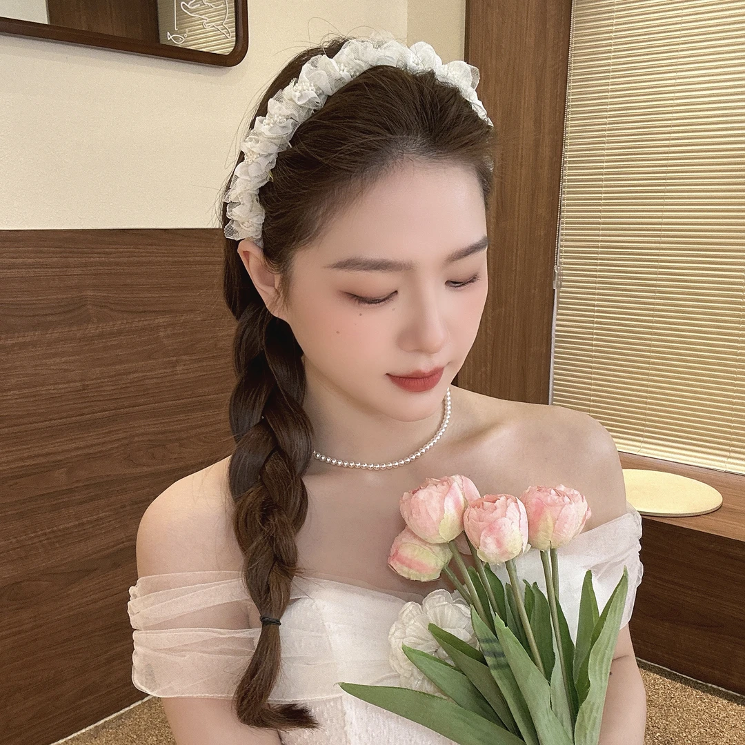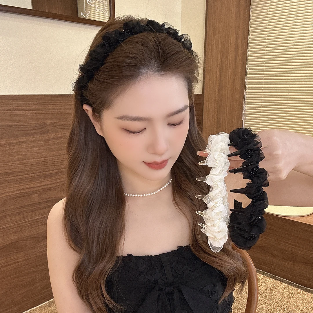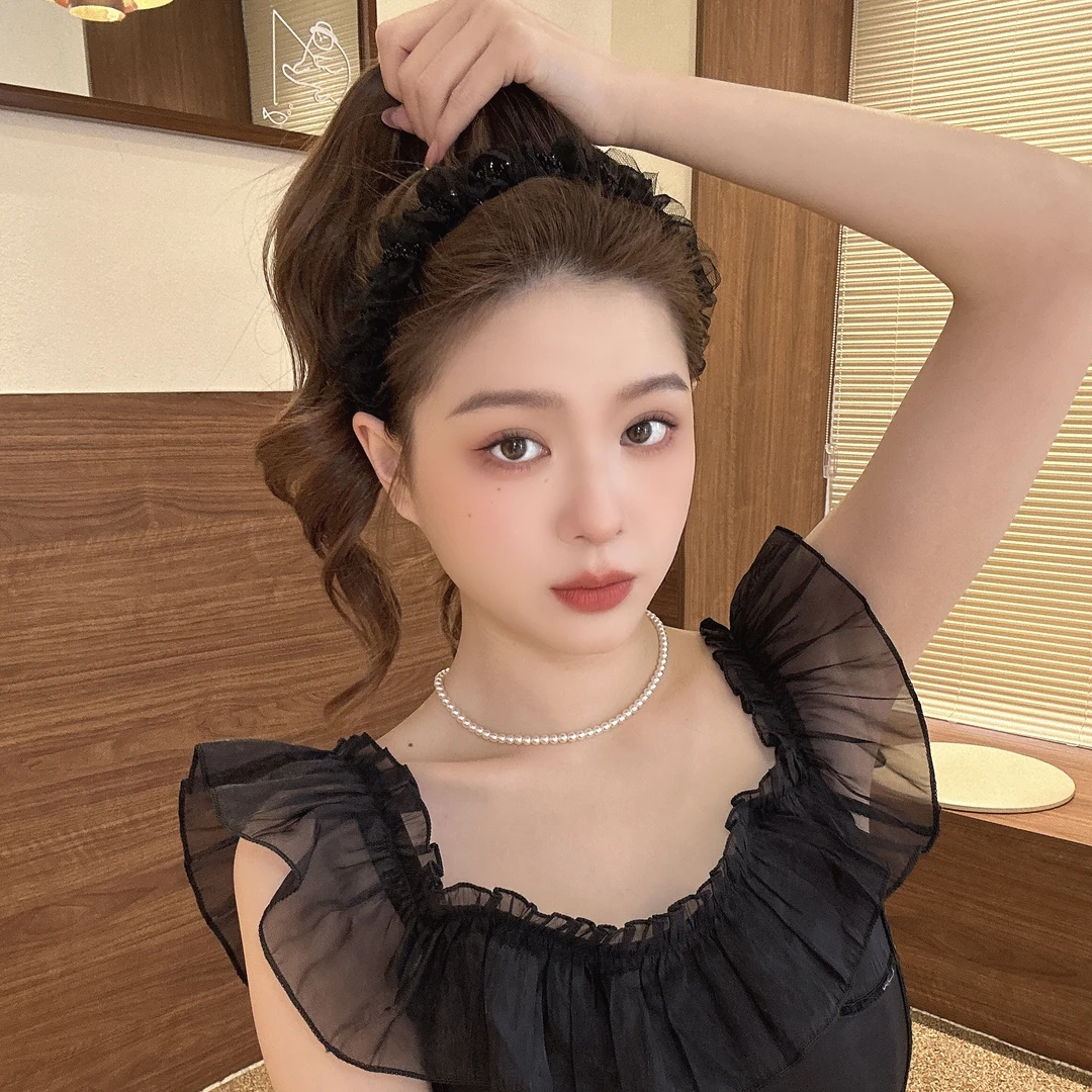 新款芭蕾网纱褶皱珠珠发箍女高颅顶减龄显脸小洗脸头箍百搭