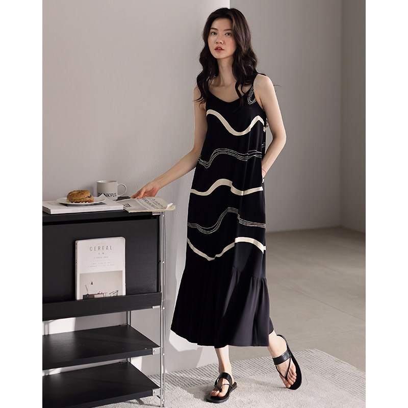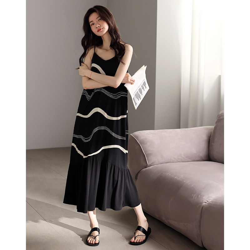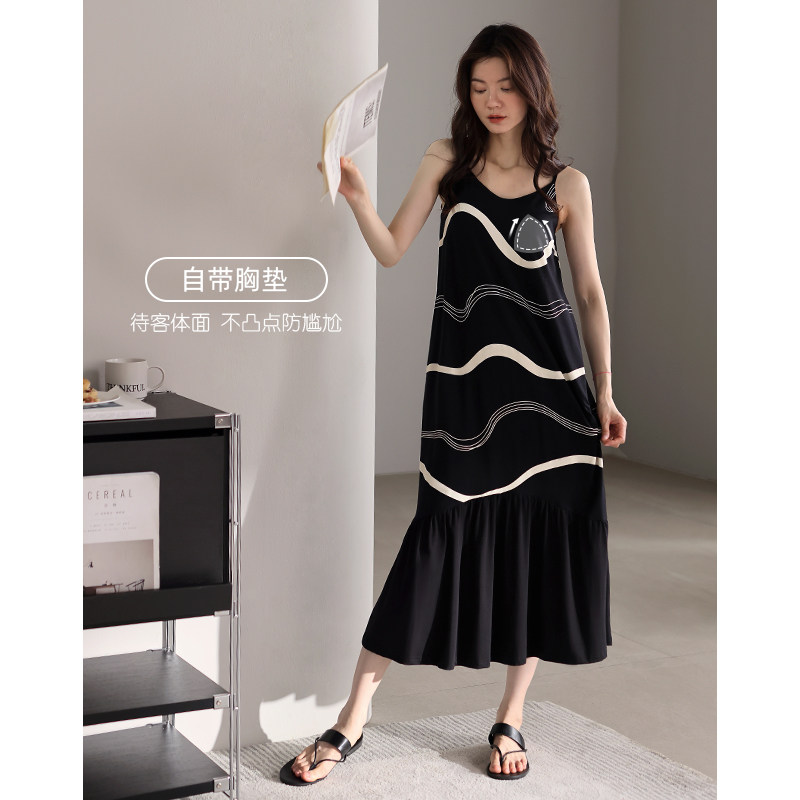 带胸垫吊带睡裙女士睡衣夏季莫代尔长款夏天冰丝夏款高级感连衣裙