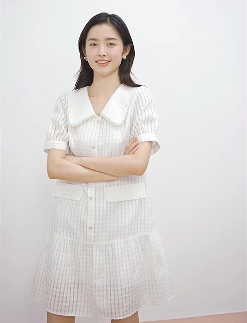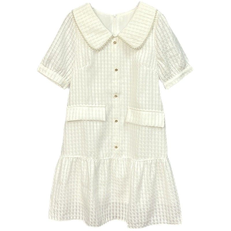 连衣裙 夏季女装精品甜美小香风钉珠娃娃领气质宽松显瘦淑女中裙