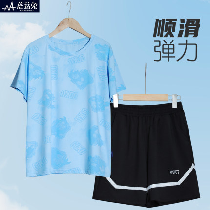 胖男童速干短袖套装夏季薄款中大童短袖短裤运动球服两件套15岁13