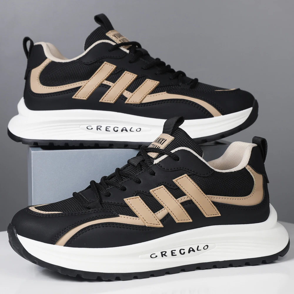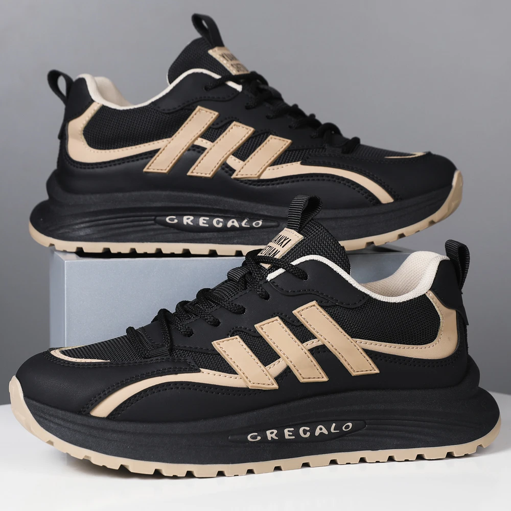 【厂家直销】高档简单大气皮面潮流厚底跑步运动鞋百搭休闲男鞋-M