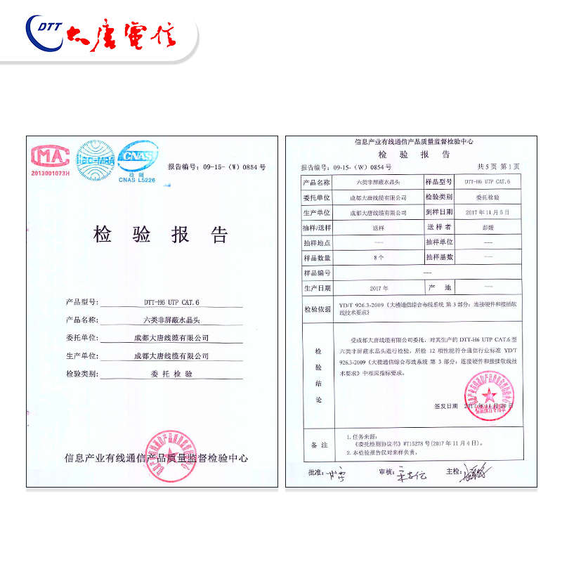 大唐电信超五类千兆六类非屏蔽镀金水晶头接口RJ45电话水晶头RJ11
