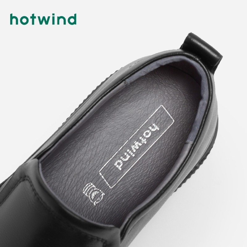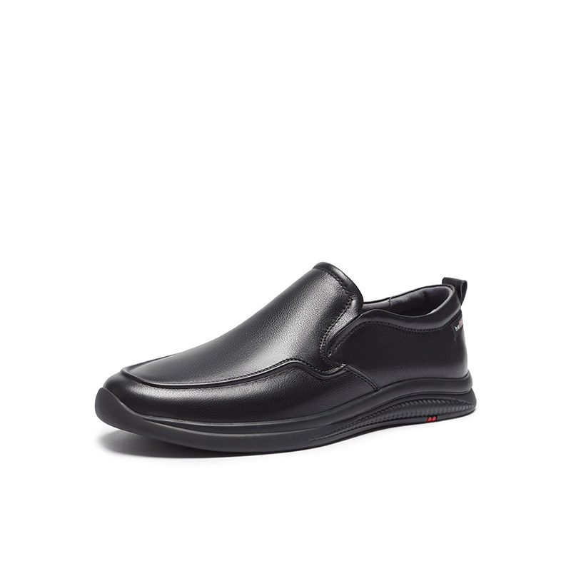 热风男鞋春季新款男士时尚休闲皮鞋黑色牛皮乐福鞋一脚套豆豆鞋男