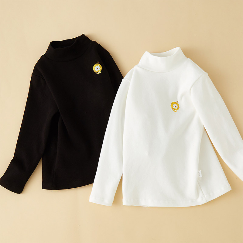 女童儿童打底衫纯棉男童长袖t恤秋冬上衣内搭宝宝半高领加绒保暖