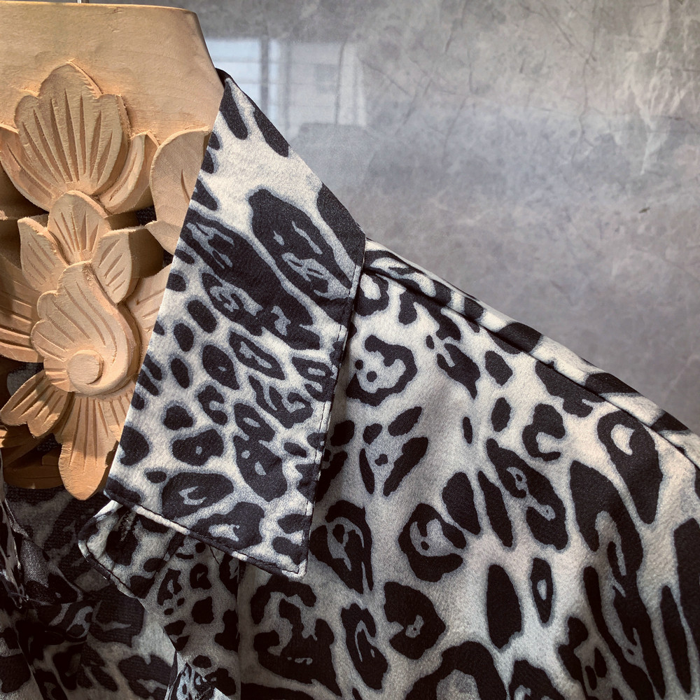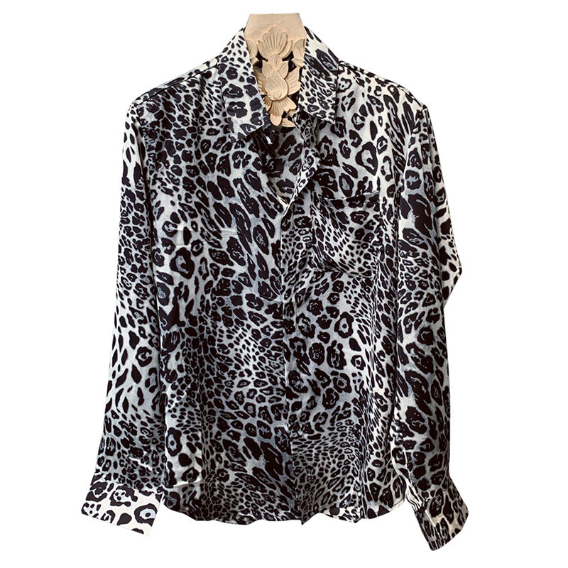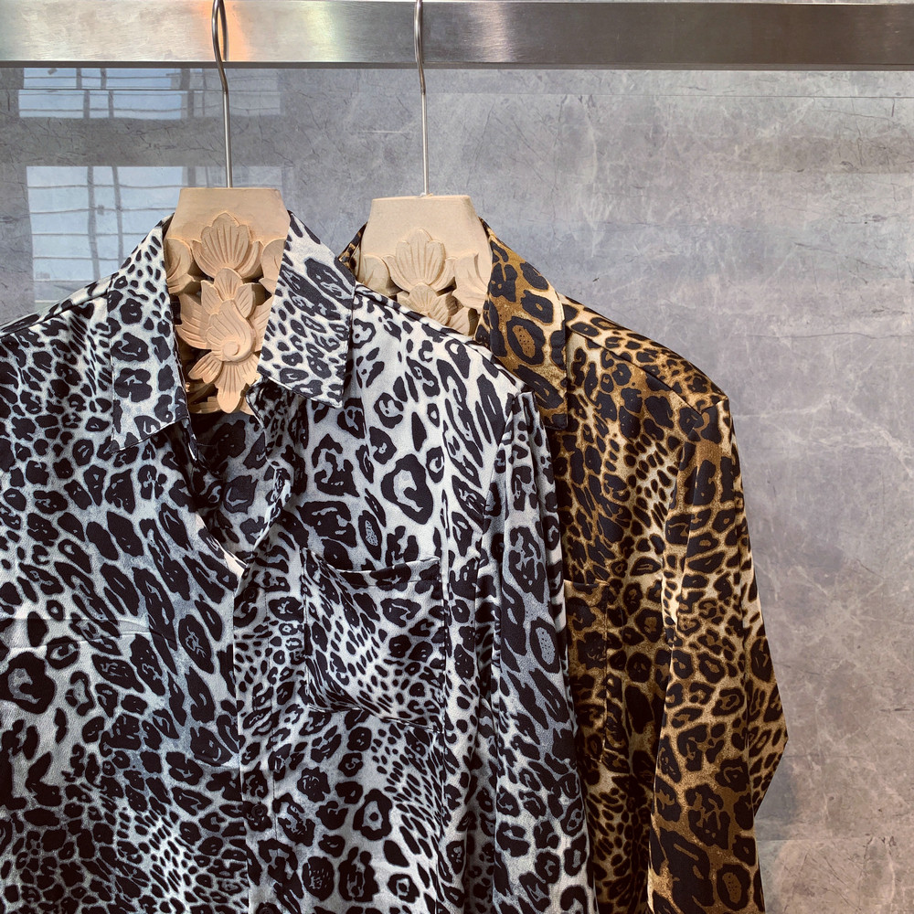 韩国东大门豹纹衬衫男欧美风穿搭宽松长袖个性发型师花衬衣薄外套