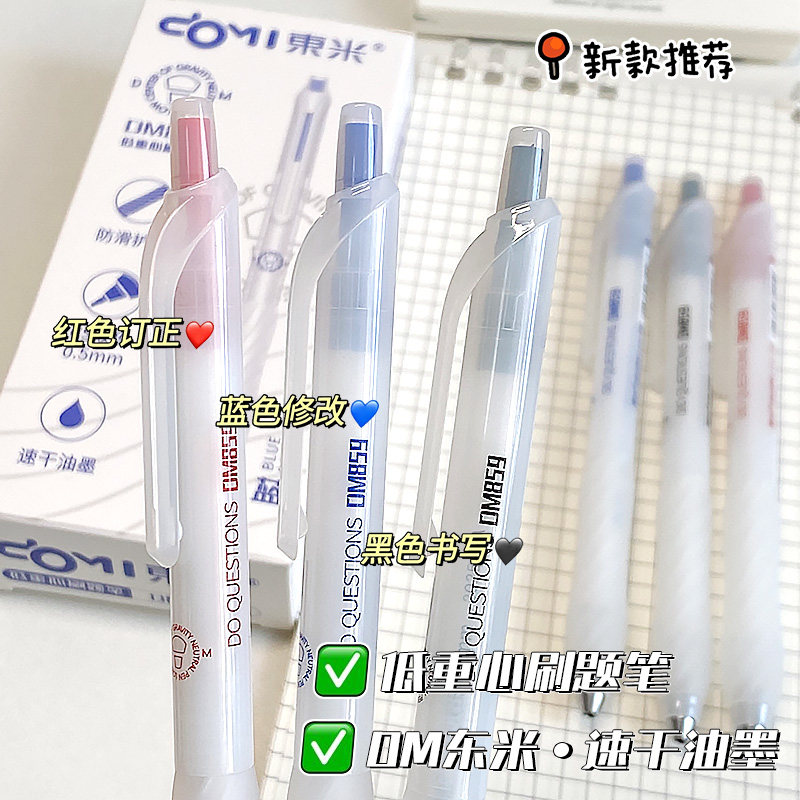 东米859低重心中性笔高颜值ins风红笔按动刷题笔速干顺滑cs签字圆珠笔学生专用考试黑水笔学习文具官方旗舰店