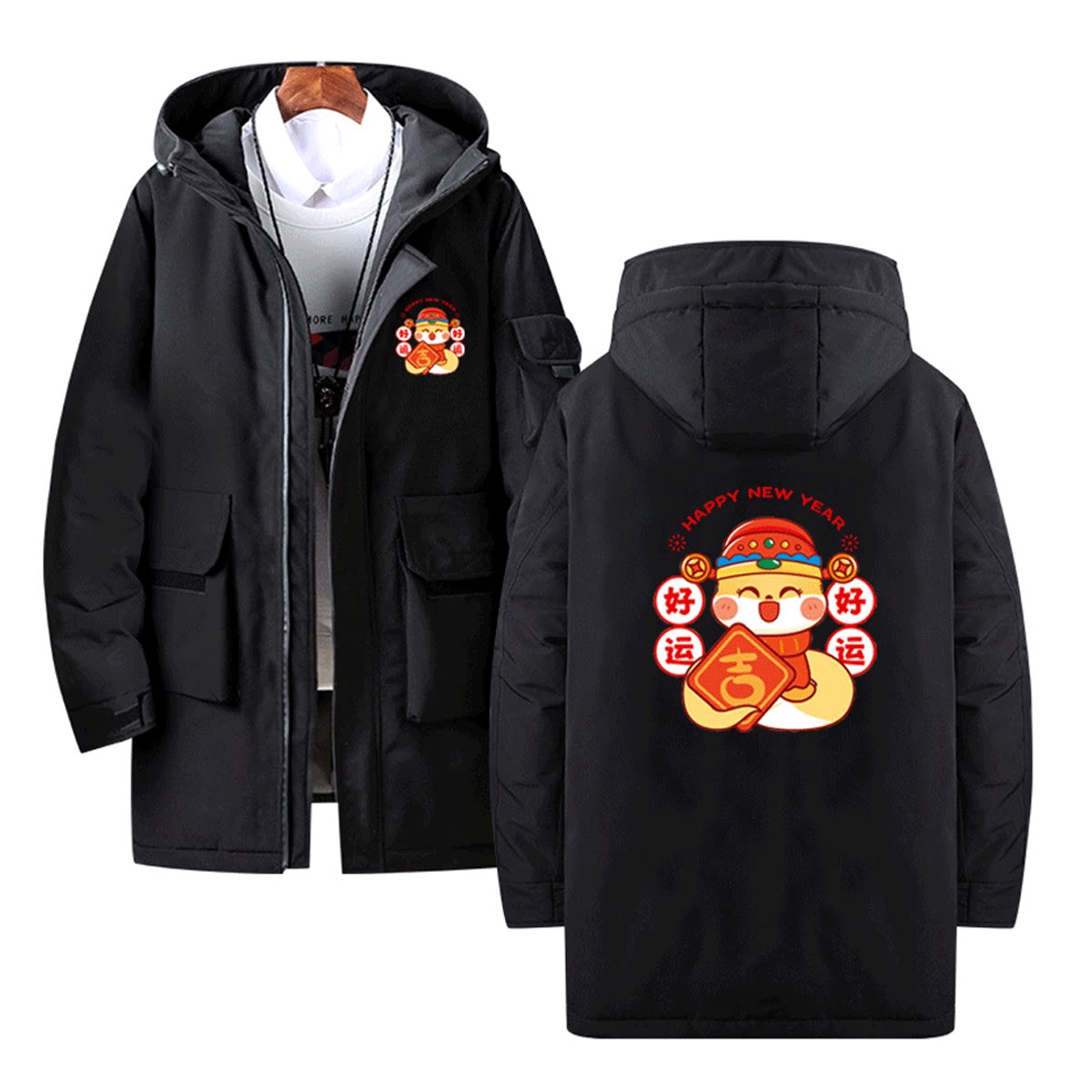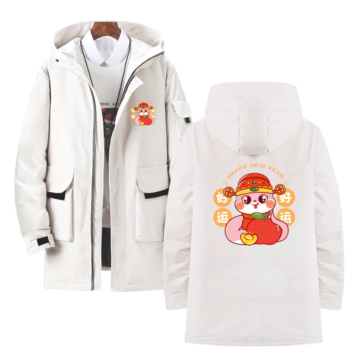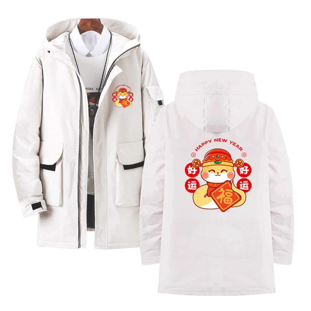 2025蛇年本命年男女新年春节家庭公司聚会年会连帽外套定制羽绒服