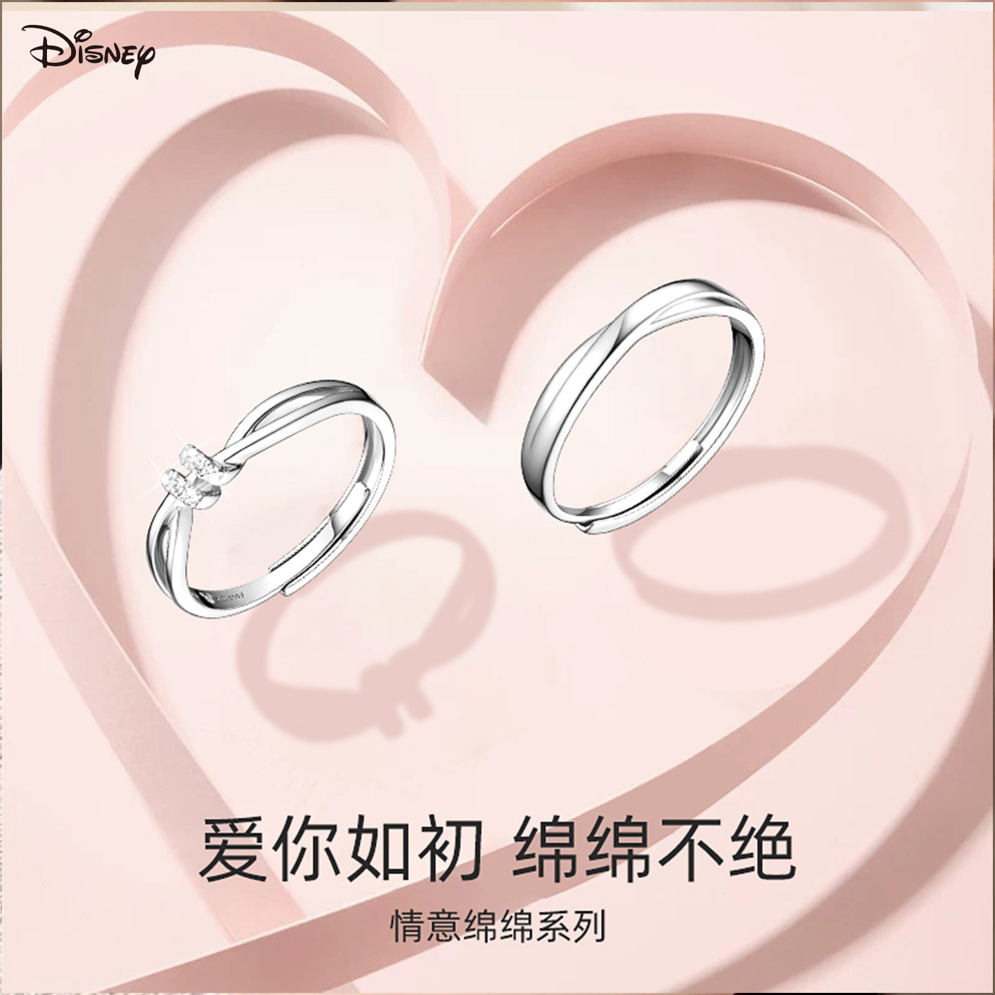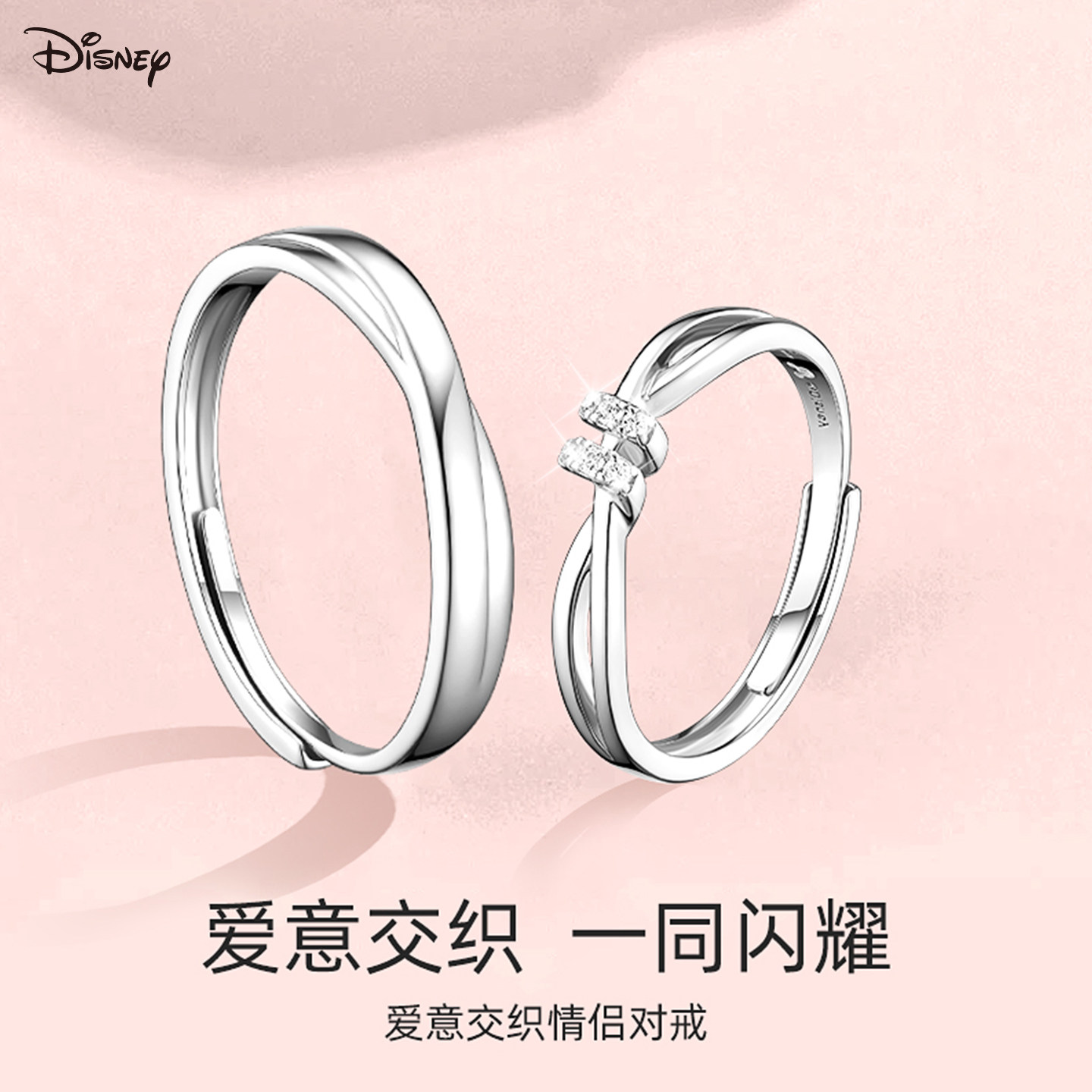 迪士尼爱意交织情侣对戒925银戒指女款轻奢小众高级感送女友礼物