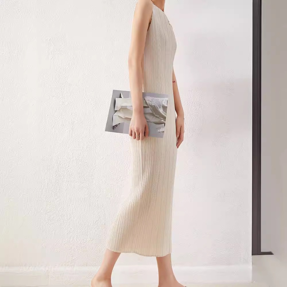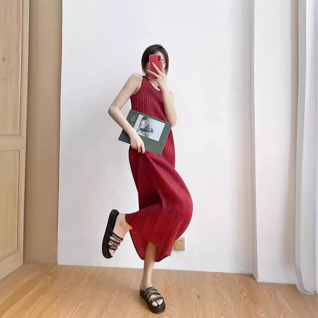 工厂直销三宅基础款百搭圆领无袖中长款打底包臀裙背心连衣裙女
