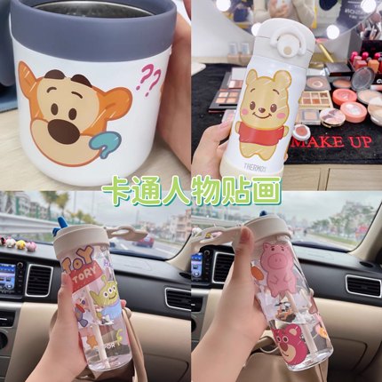 卡通可爱迪士尼维尼熊水杯贴纸保温杯手账无痕装饰ins贴画防水