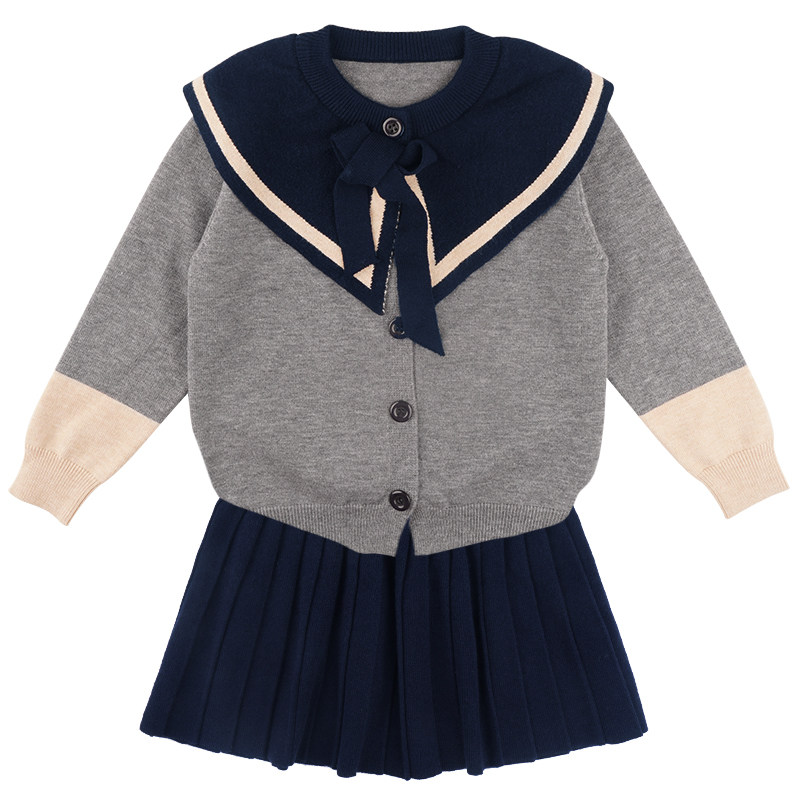 女童秋装套装2023新款儿童针织两件套学院风毛衣短裙洋气女孩套裙
