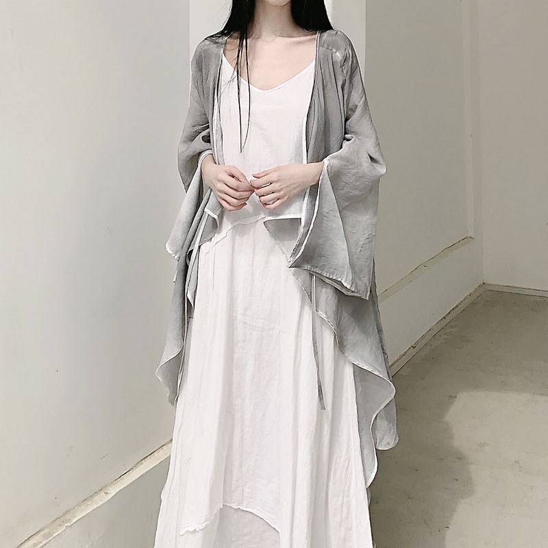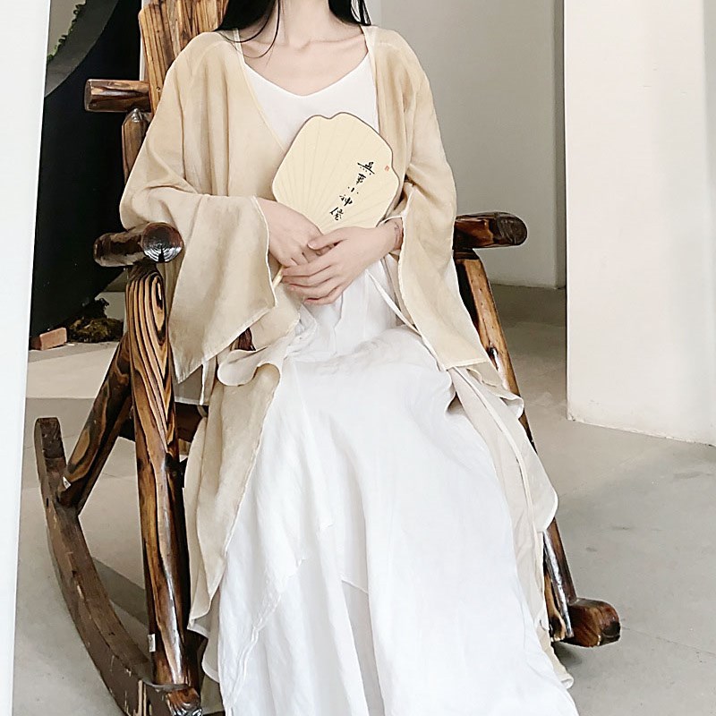 文艺国风飘逸系带开衫女中长款汉服薄外套春夏天丝长袖防晒衫外搭