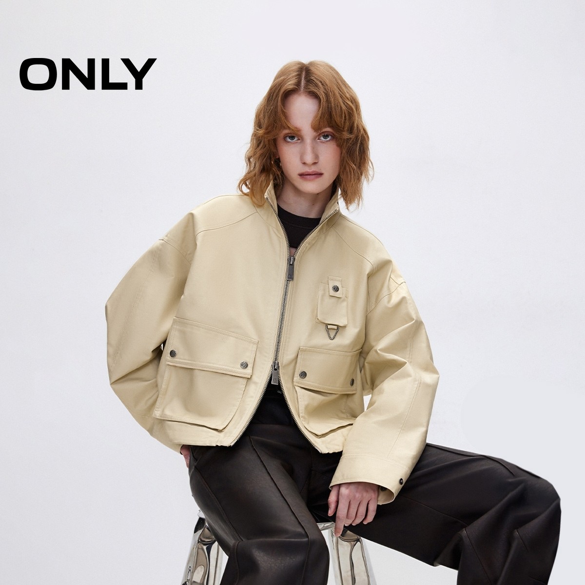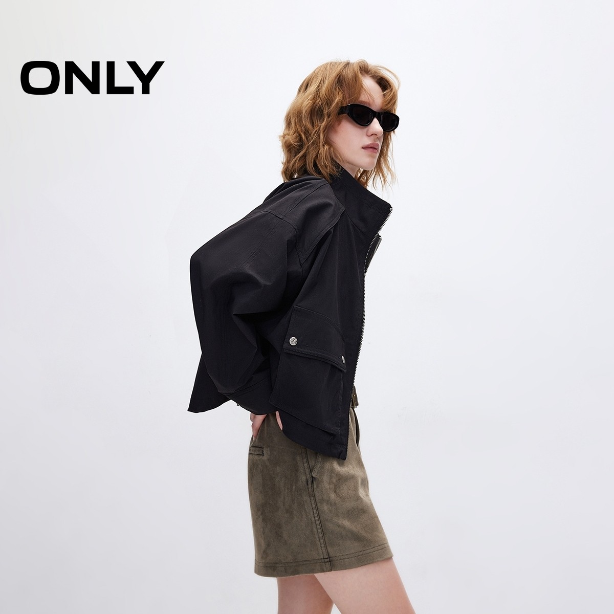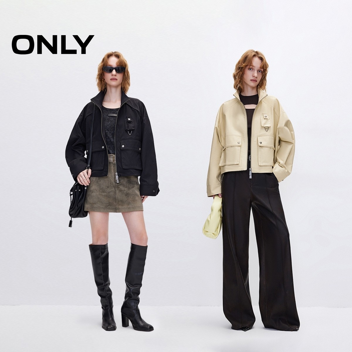 绫致ONLY2025春夏新款时髦工装风短款宽松长袖风衣外套女