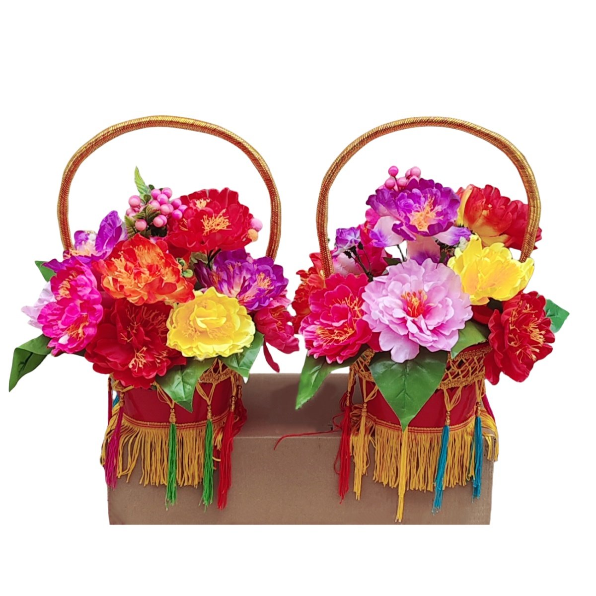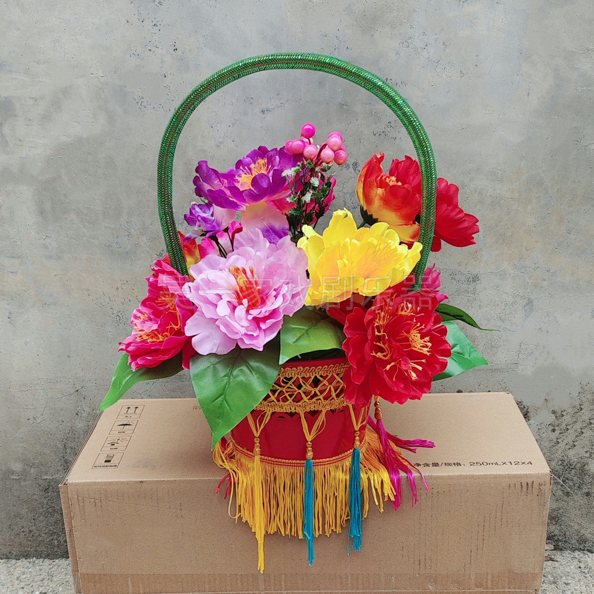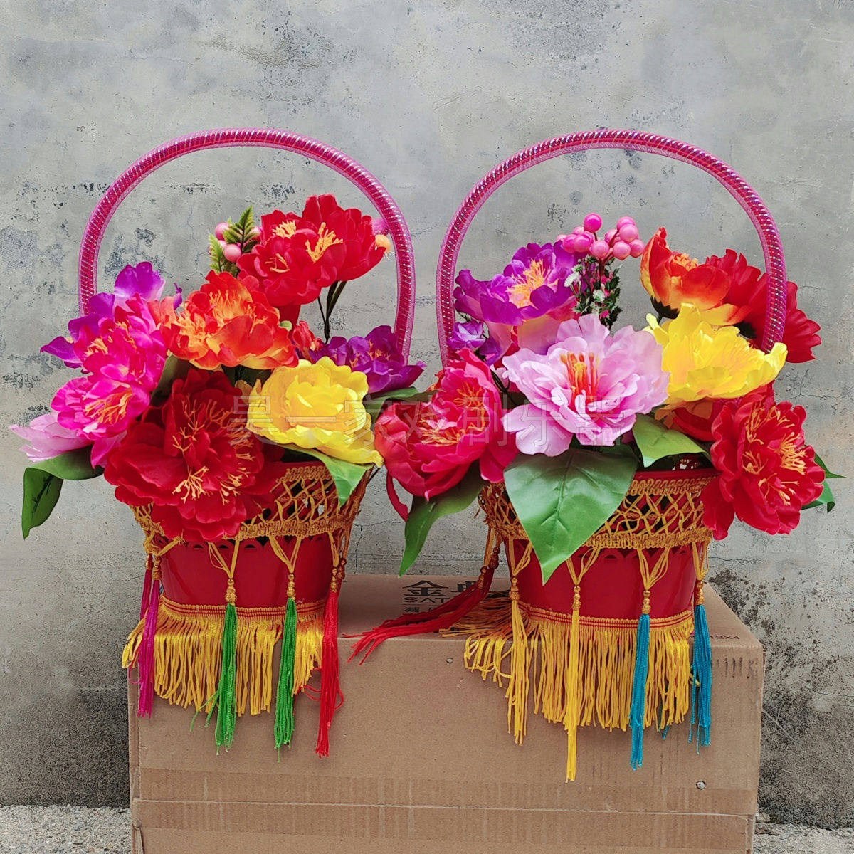 扭大秧歌挑花篮舞蹈花挑道具手提花篮回娘家红扁担社火喜庆表演出