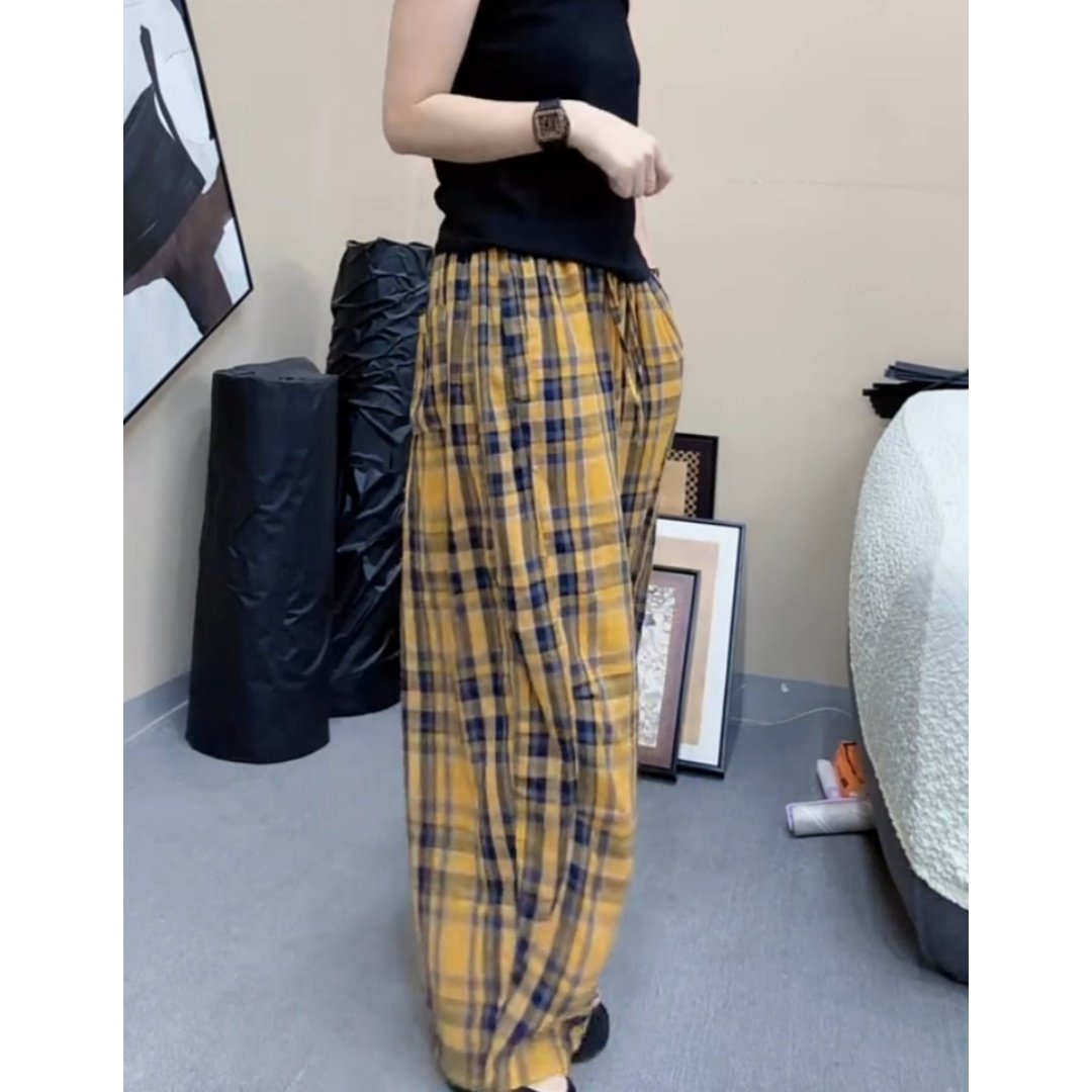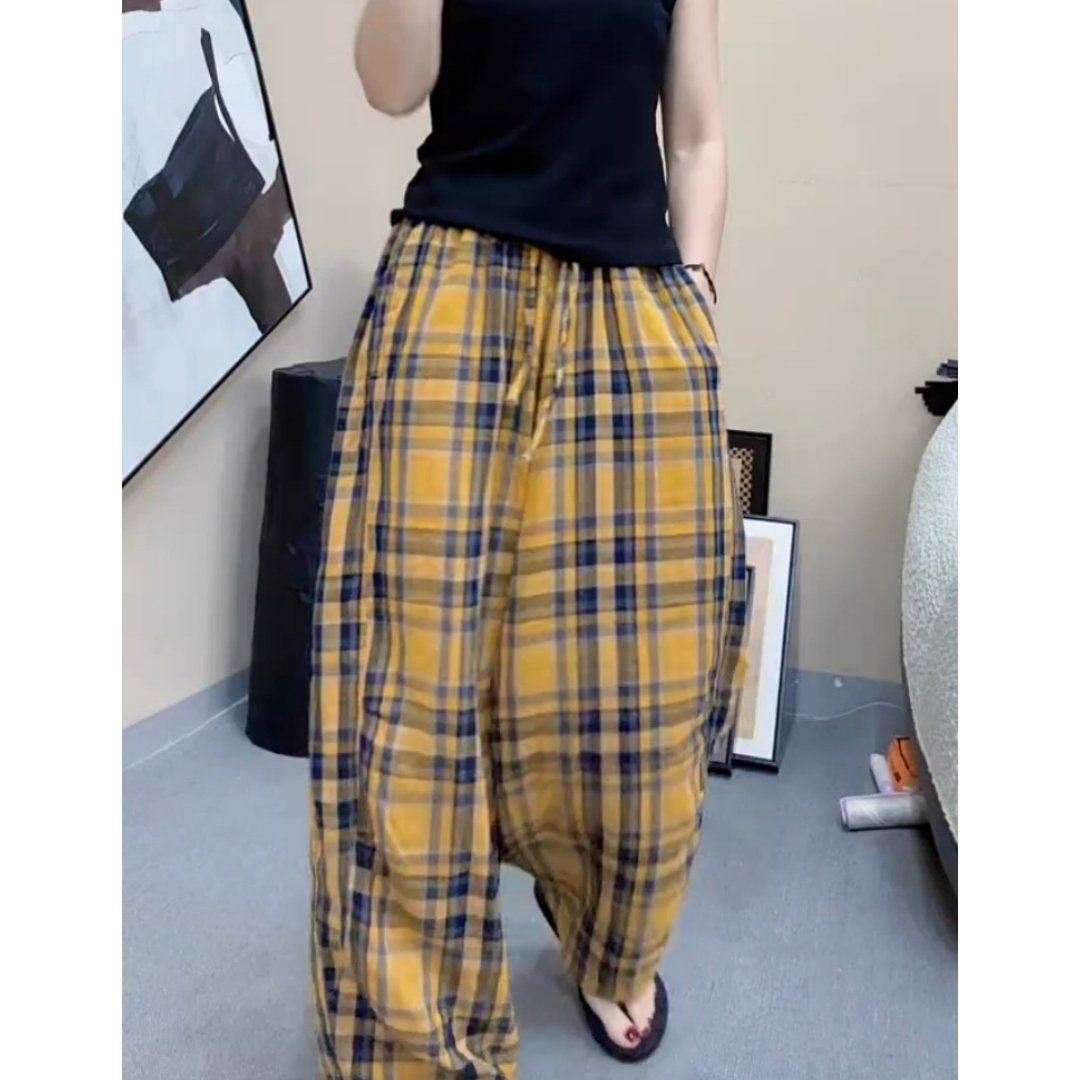 格子裤女裤宽松bf慵懒风休闲裤2025年夏季直筒阔腿裤薄款山本裤子