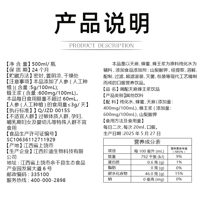 人参蜂王浆调制饮品口服液中老年健康老牌子营养品南昌健民珍迪牌