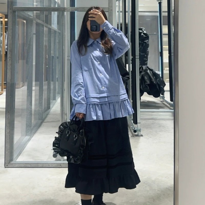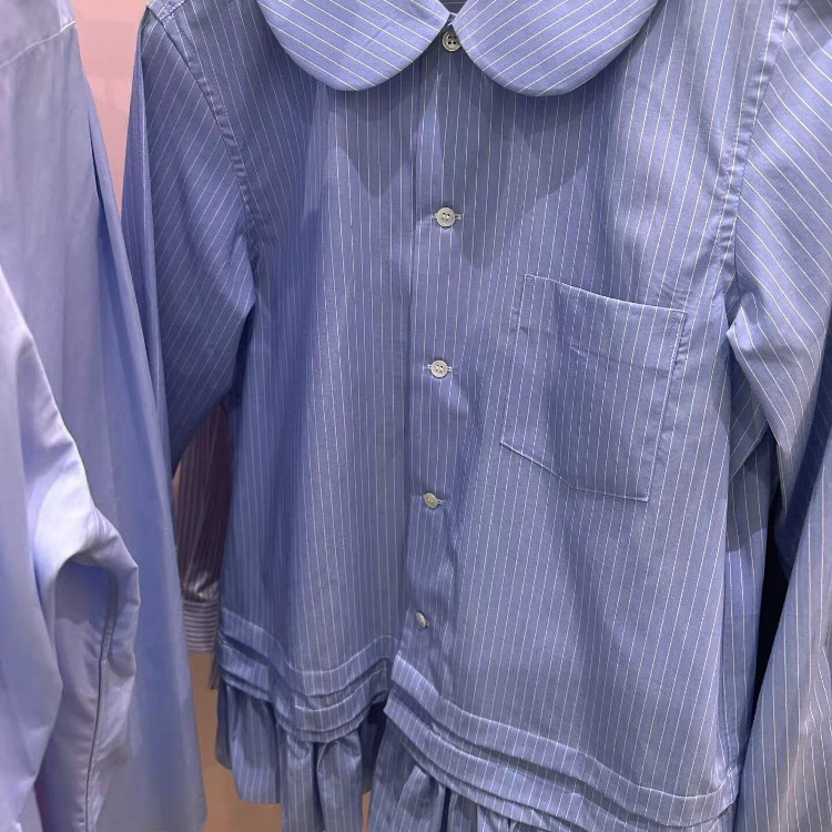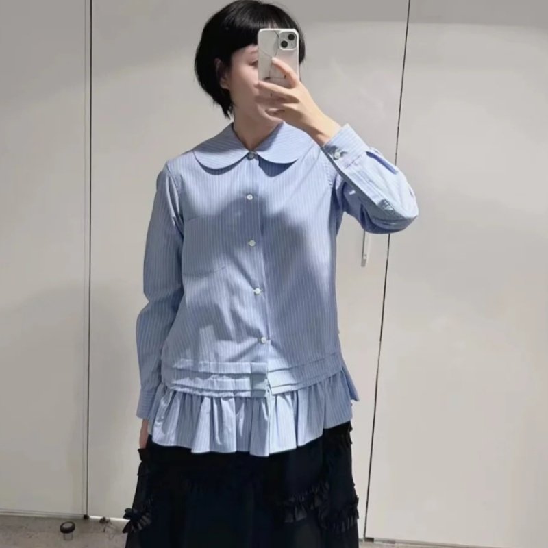 CDG KZYU 25春夏新款娃娃领条纹荷叶边下摆衬衫长袖开衫上衣女款