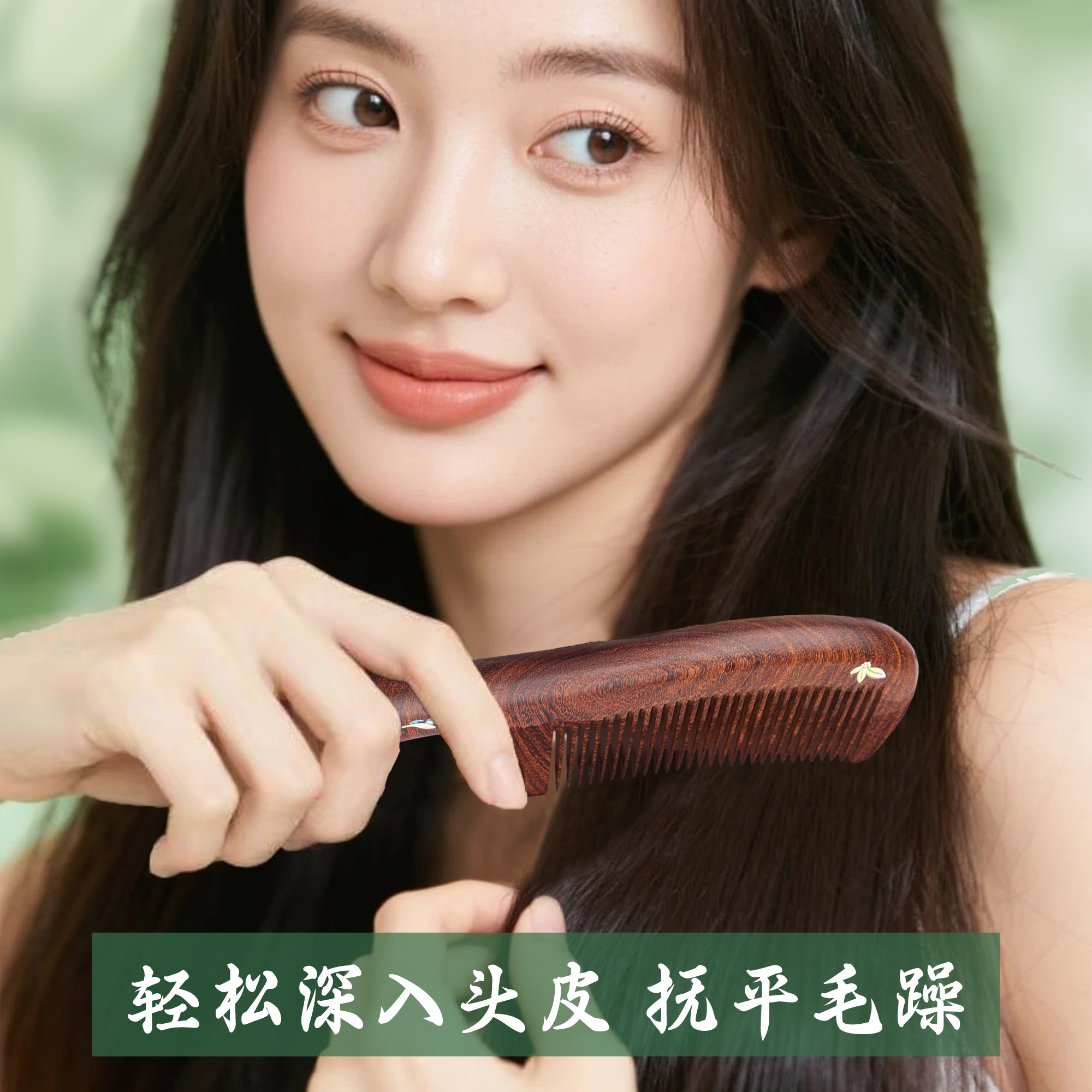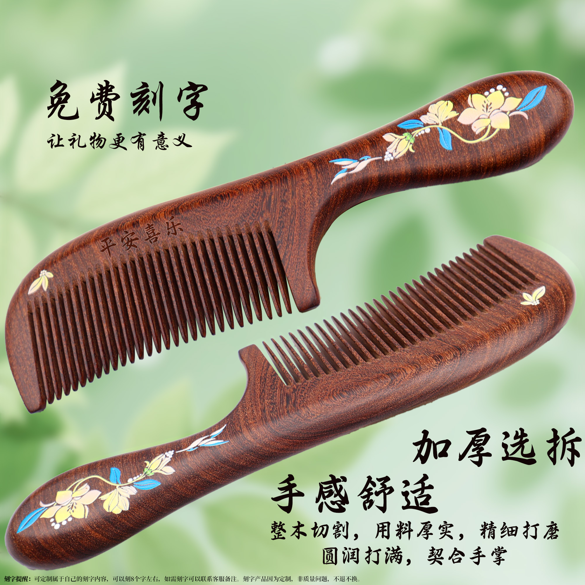 真檀木金丝檀木梳子彩绘木梳女生长发家用木梳减少静电养发木梳子