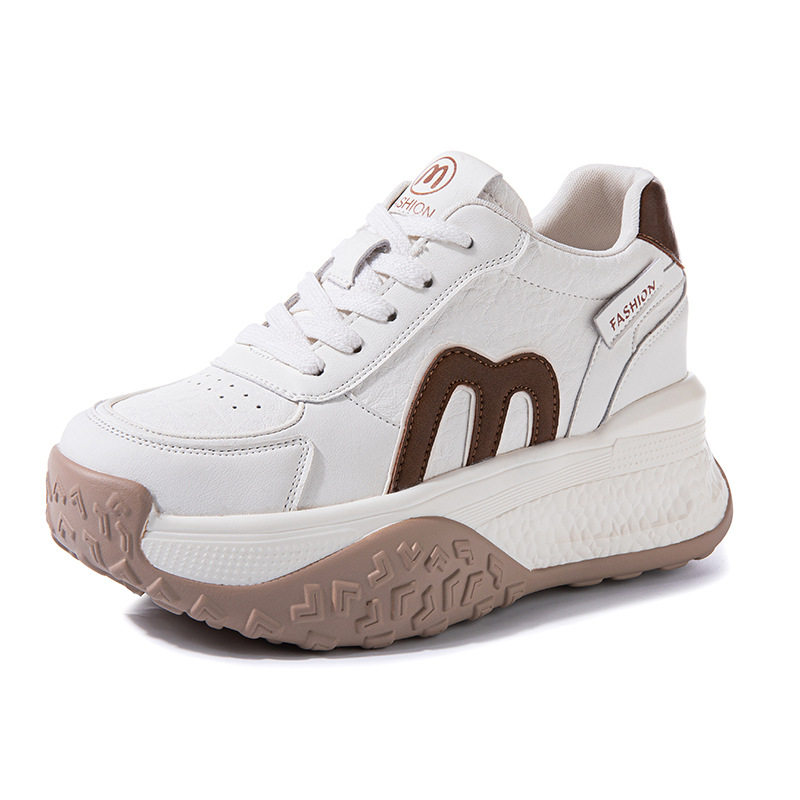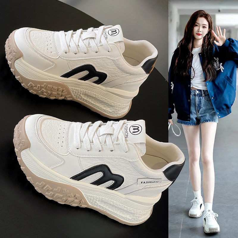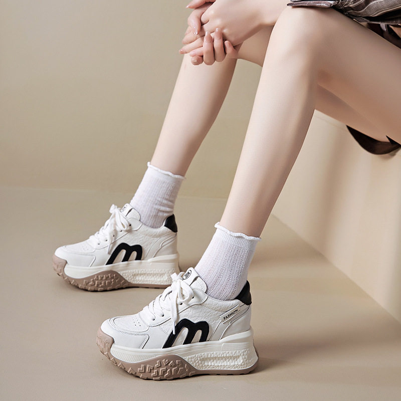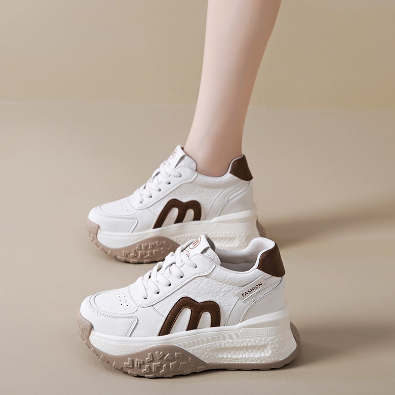 真皮老爹鞋女小白鞋2026新款小个子厚底内增高9CM运动休闲鞋单鞋