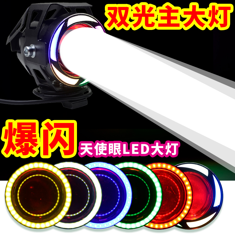 摩托车改装超亮led大灯强光电动电瓶车灯激光炮开道爆闪外置射灯