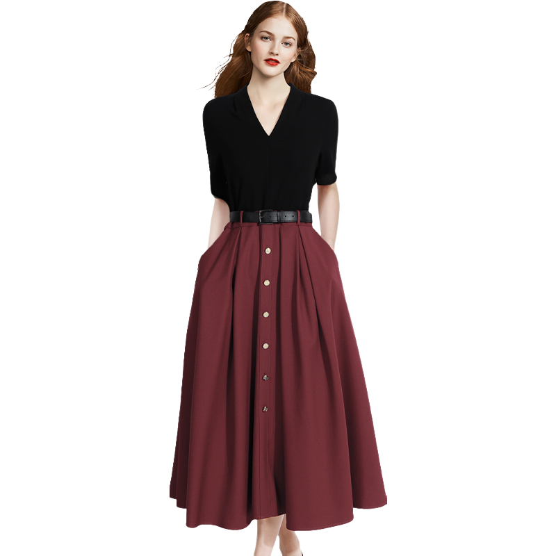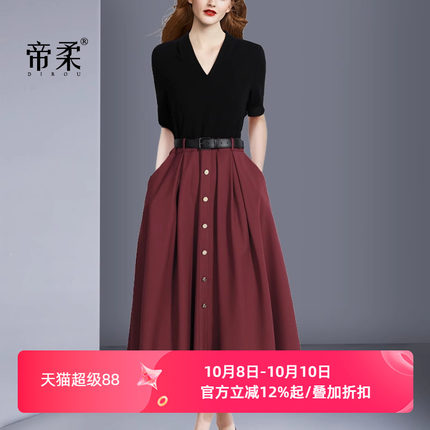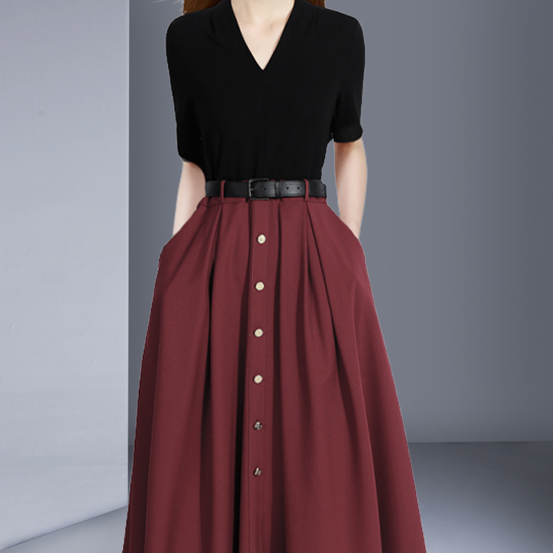 法式复古黑色衬衫酒红裙子两件套2025新款时尚收腰气质通勤套装夏