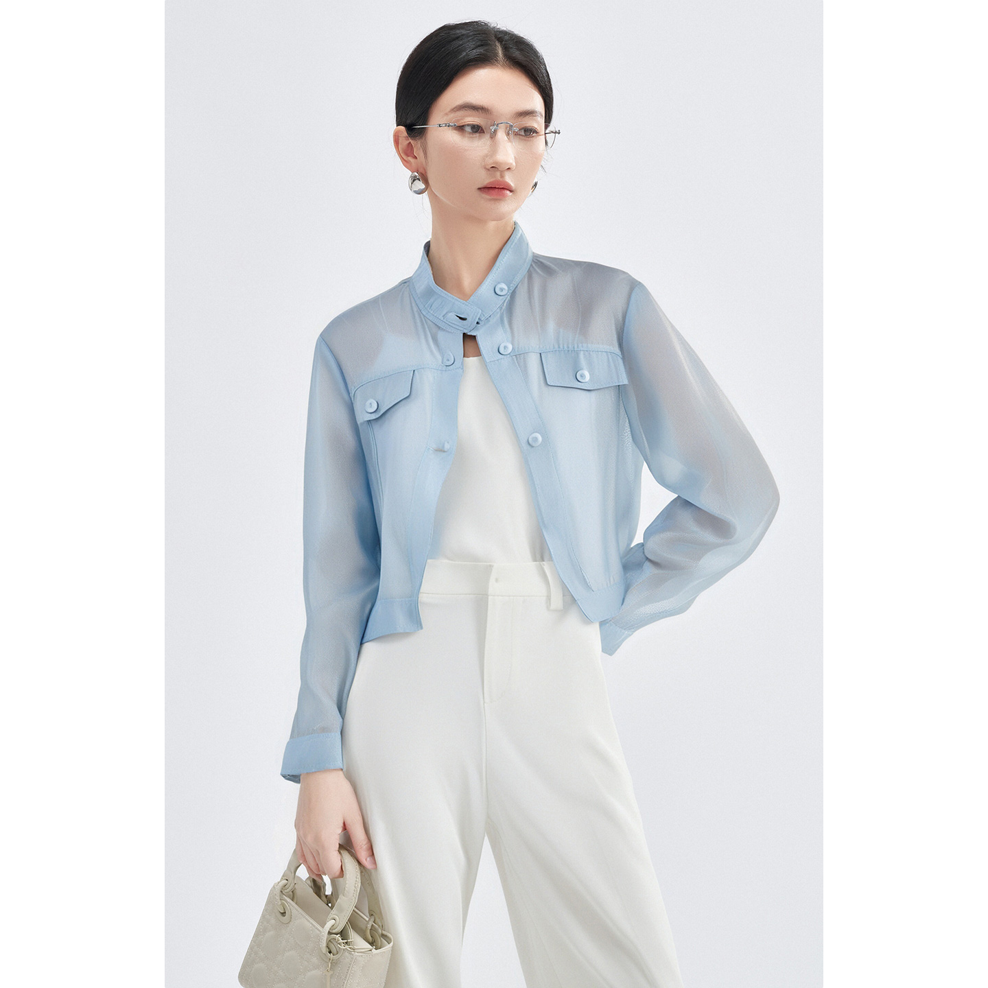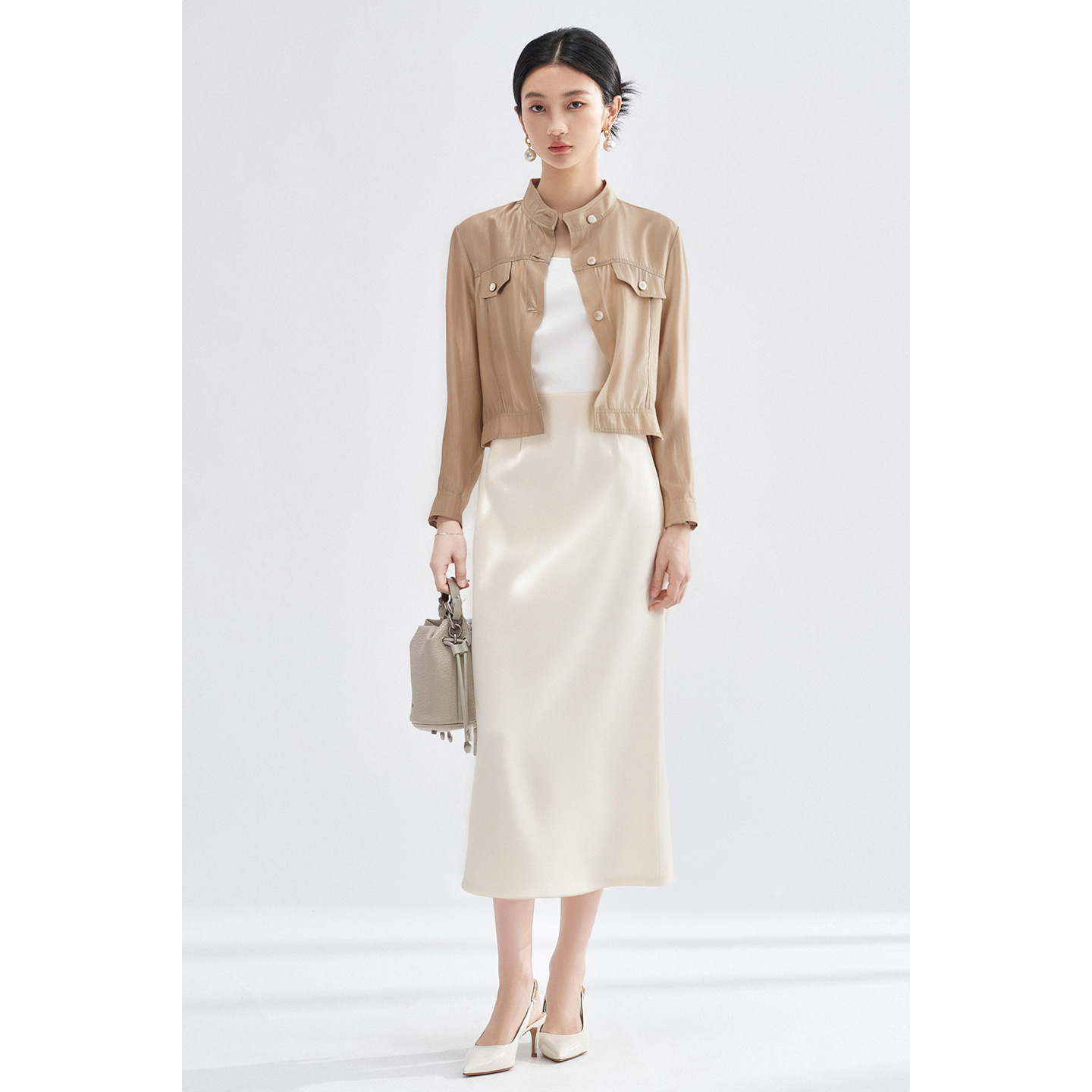 米思阳2025秋季新款时尚休闲通勤醋酸短外套小个子短款夹克上衣女