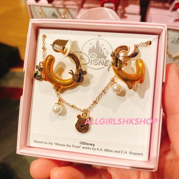 香港迪士尼限定米奇米妮噗噗维尼纯银闪石成人项链耳钉手链饰品