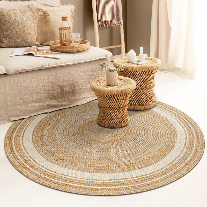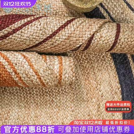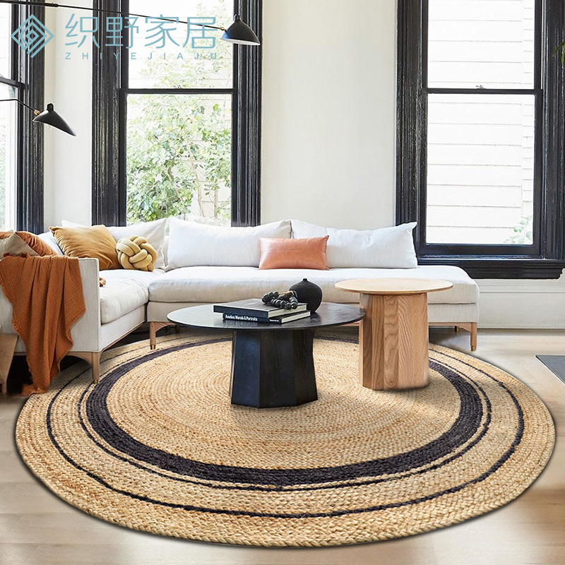 进口手工编织黄麻地毯客厅茶几田园卧室床边毯圆形家用地垫可定制