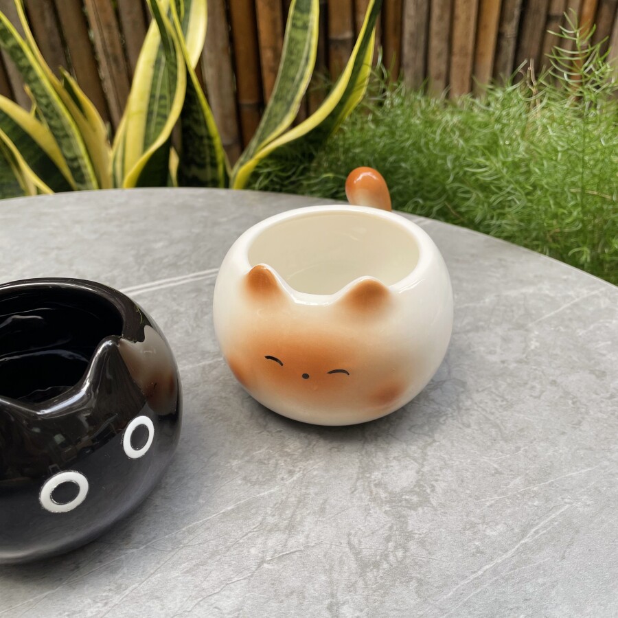 树下盒 日式可爱软萌猫咪咖啡杯小黑猫暹罗猫卡通马克杯水杯茶杯