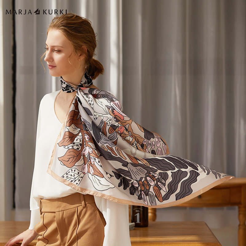 MARJAKURKI玛丽亚古琦红色真丝丝巾女妈妈大方巾围巾披肩两用礼盒