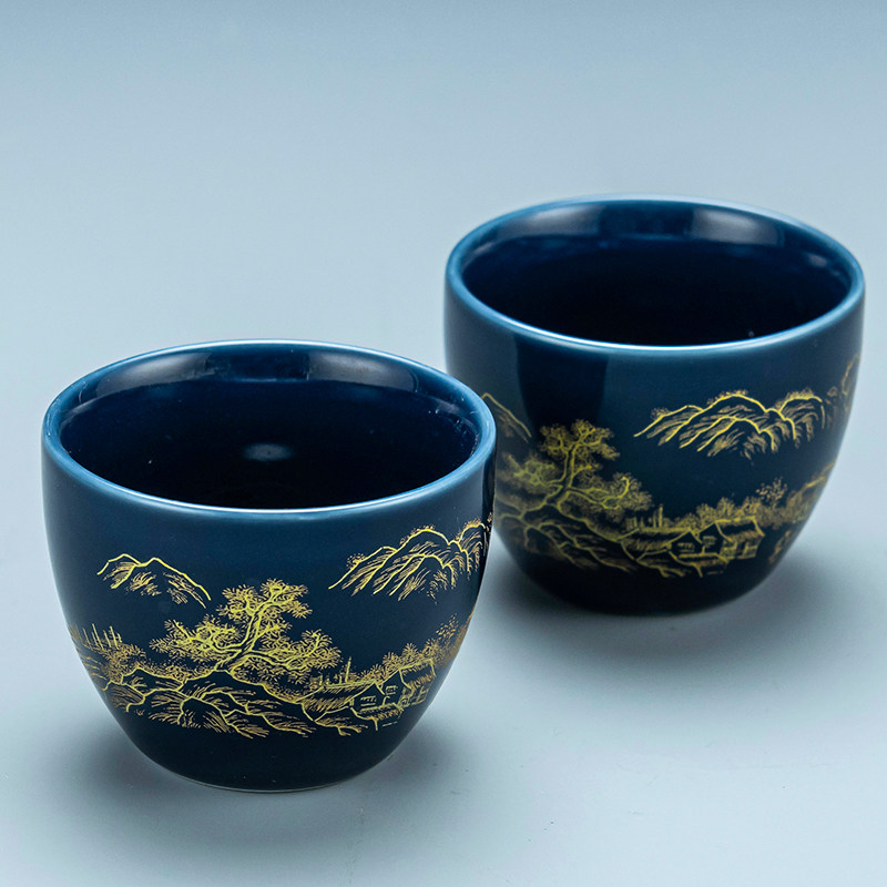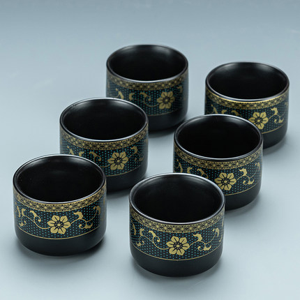陶瓷喝茶杯6只装品茗杯功夫茶具小杯子个人主人6杯架中式复古风