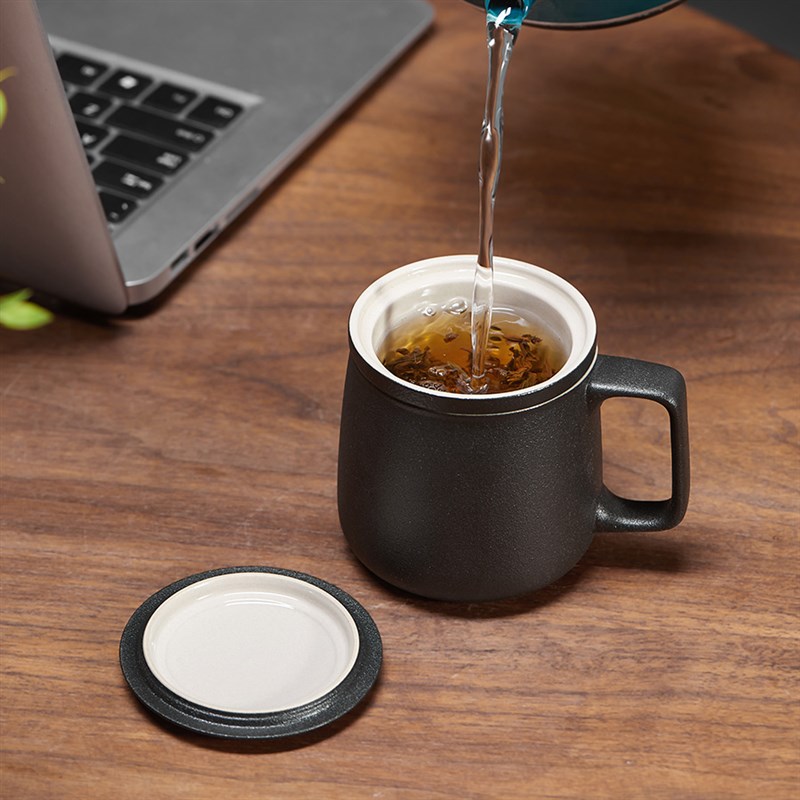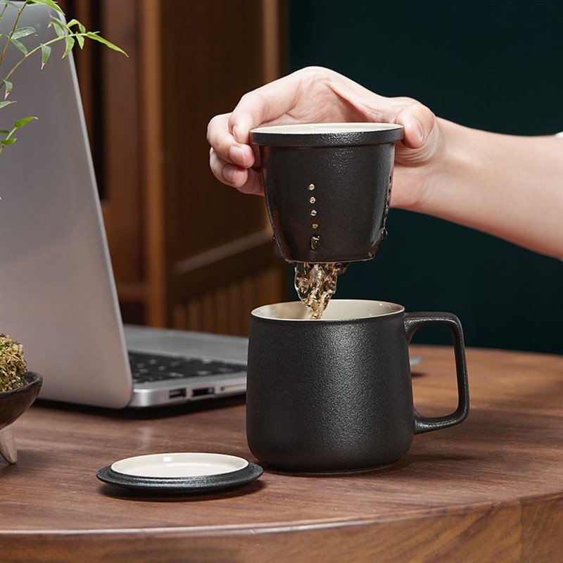 瓷之艺恒过滤茶杯陶瓷带盖泡茶杯办公室杯子茶水分离杯家用马克杯