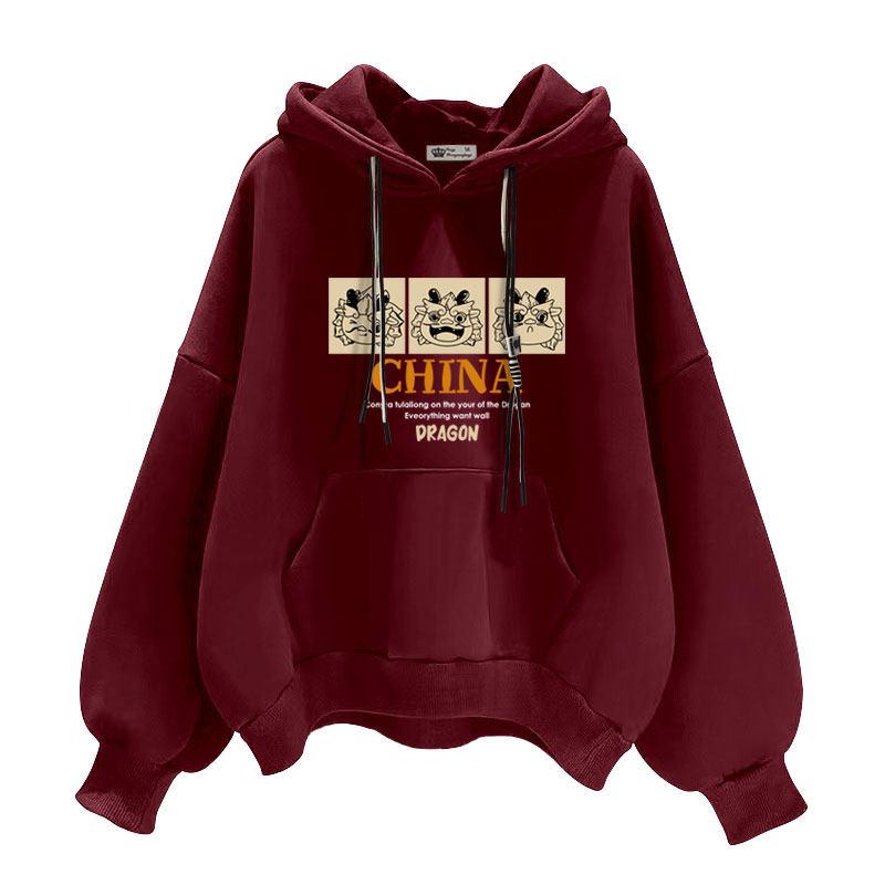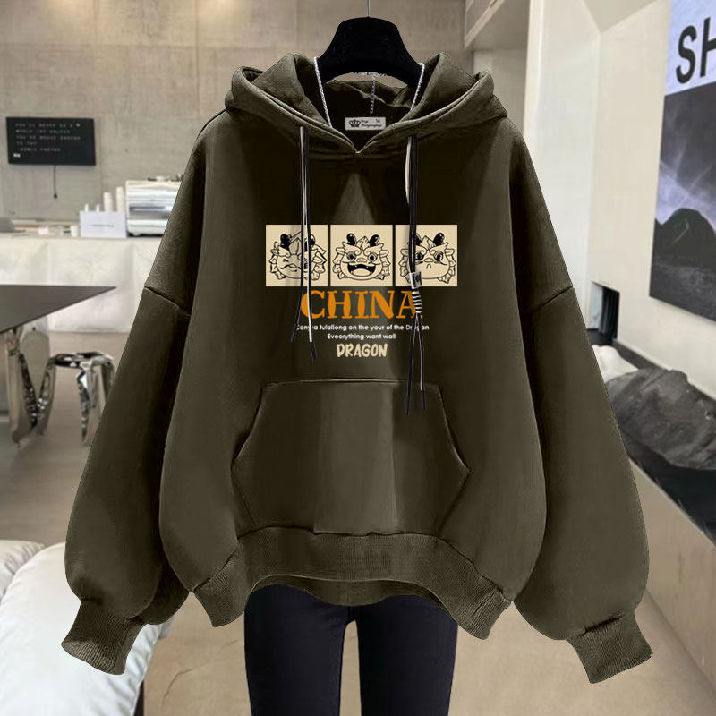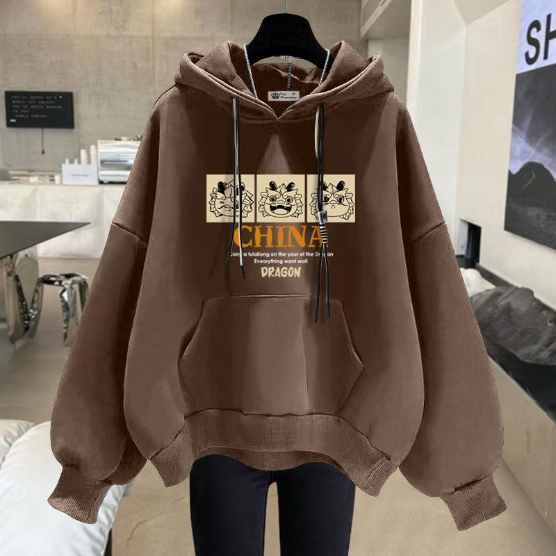 2025春秋冬季新款龙年卡通有口袋加绒加厚宽松套头连帽卫衣女潮