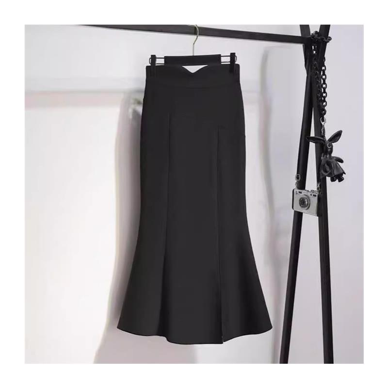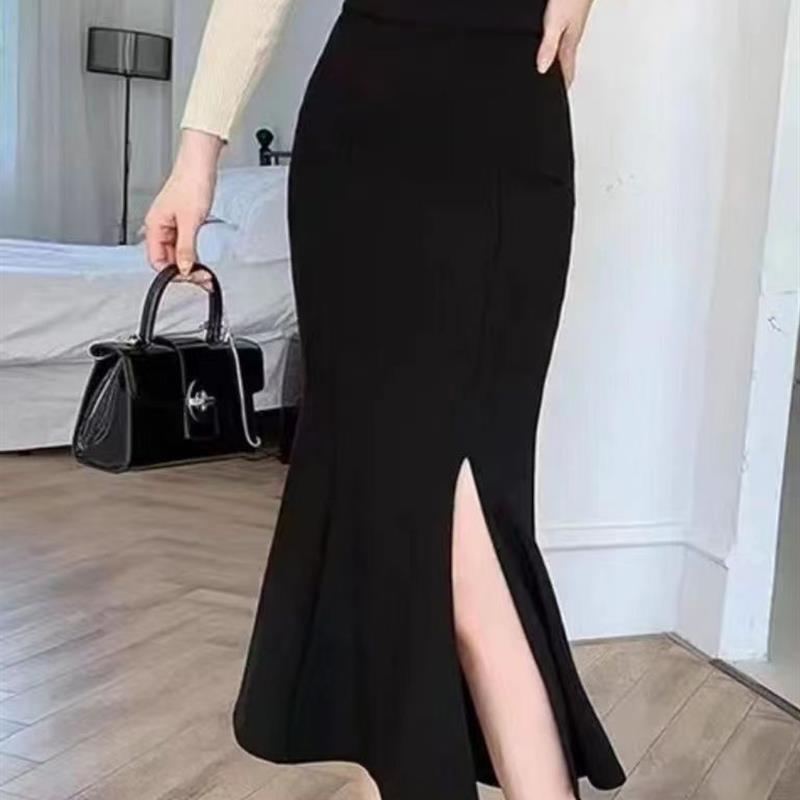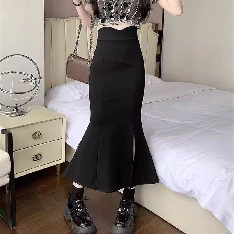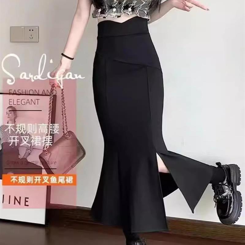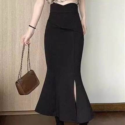 高腰鱼尾裙半身裙女春夏2025夏新款显瘦长款小个子黑色开叉包臀裙