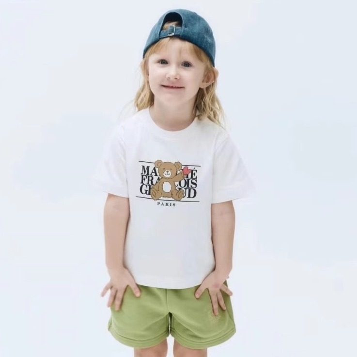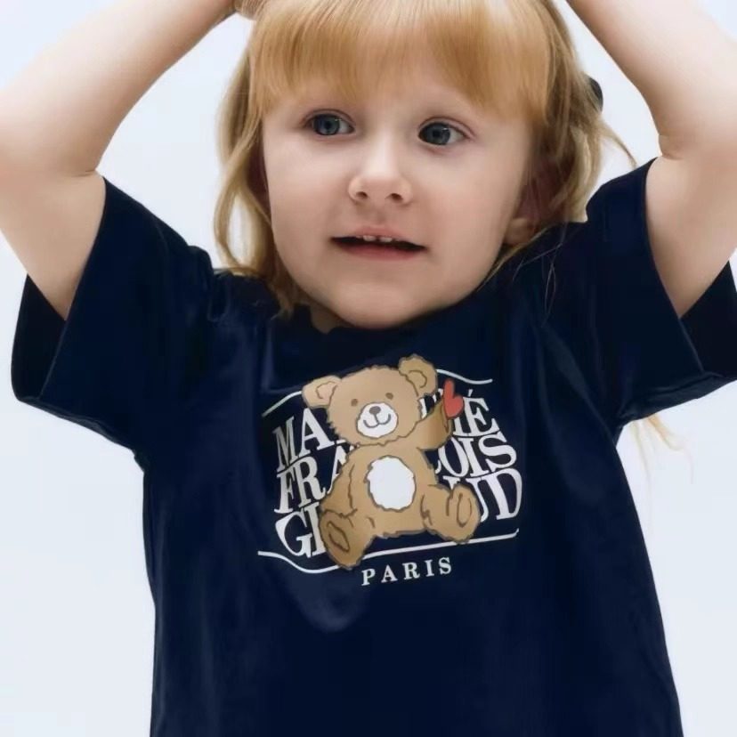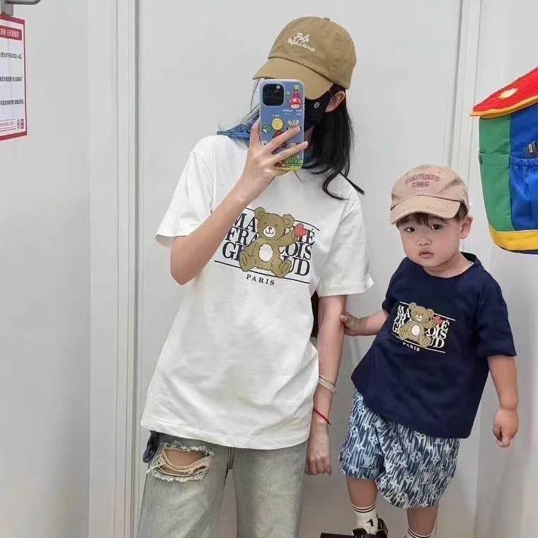 韩国儿童短袖潮牌marithe小熊印花纯棉t恤夏季亲子装男女童装上衣