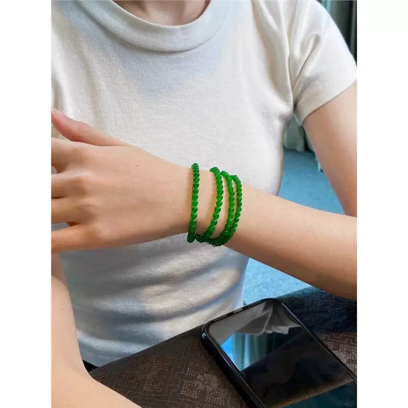 天然a货翡翠高冰种珠子108颗项链帝王绿吊坠6mm小米珠辣绿色圆珠