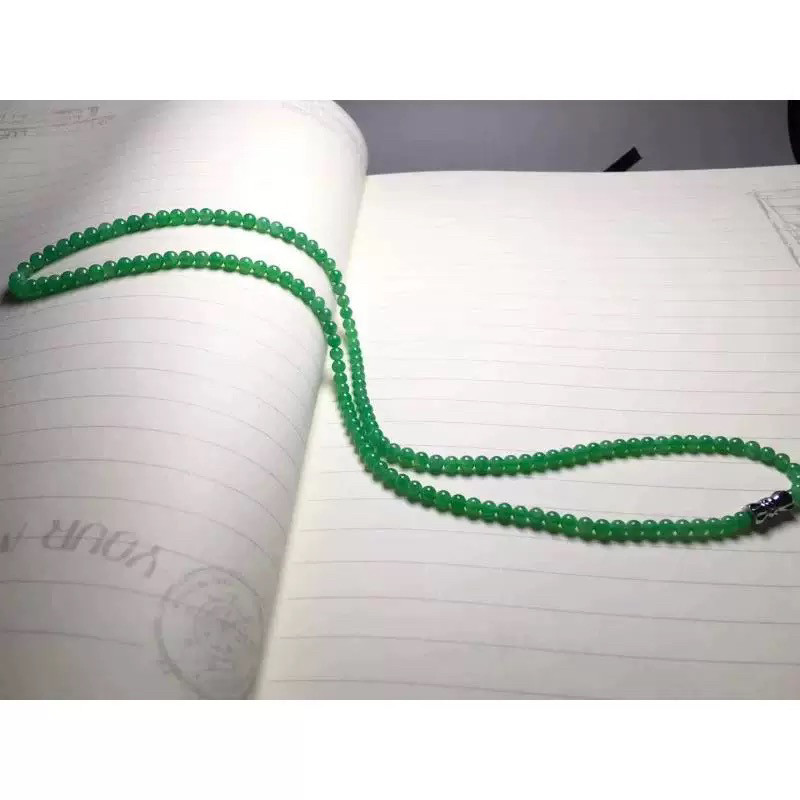 天然a货翡翠108颗项链帝王绿吊坠