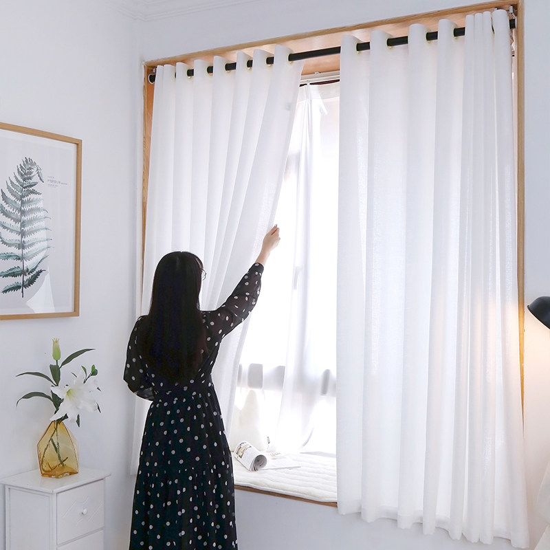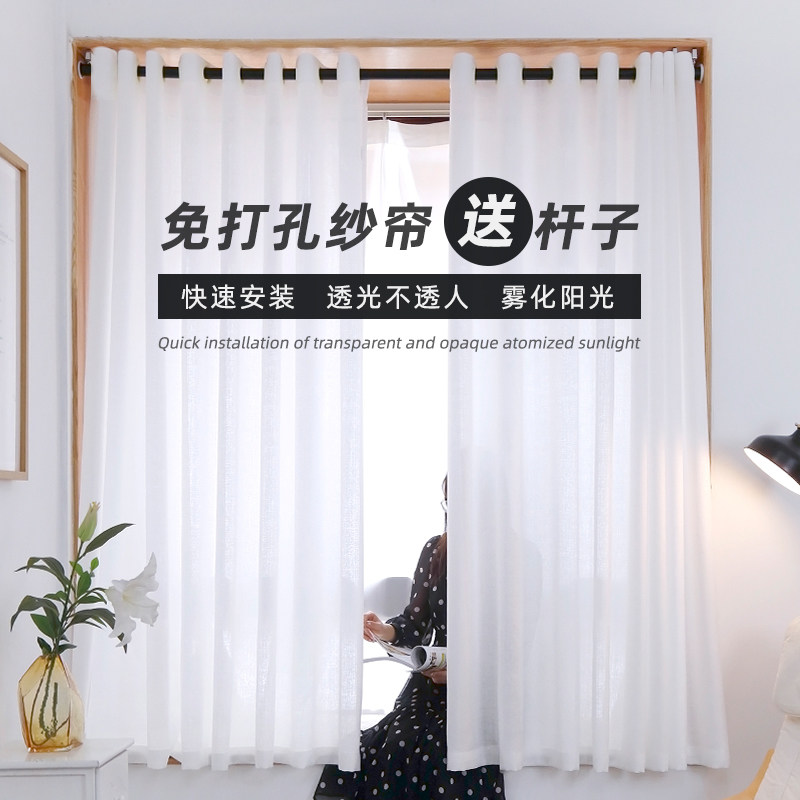 免打孔窗帘纱帘透光不透人飘窗白纱宿舍纱隔断卧室小窗户窗纱白色
