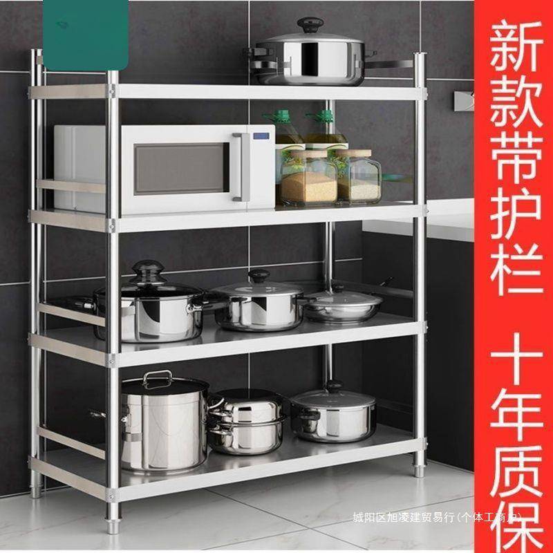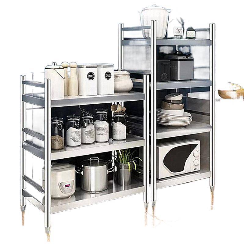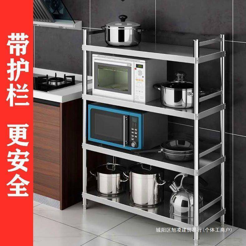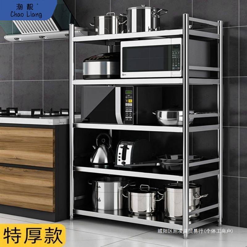 不锈钢厨房置物架微波炉架落地多层厨房用品收纳储物架烤箱架金属