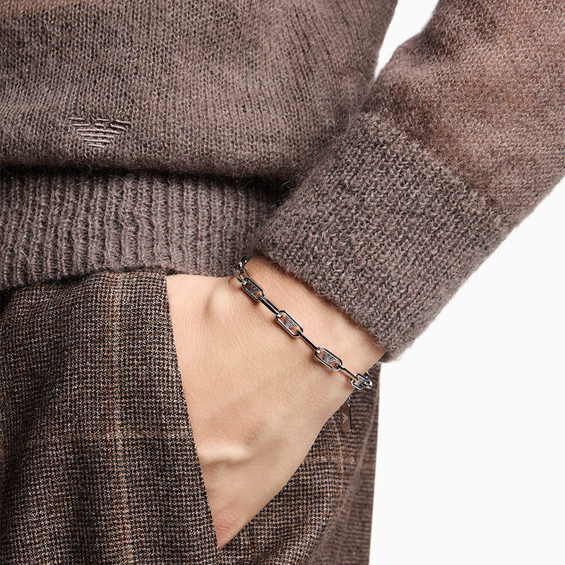【情人节礼物】EMPORIO ARMANI/阿玛尼冬新款男士钢质古巴链手链