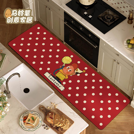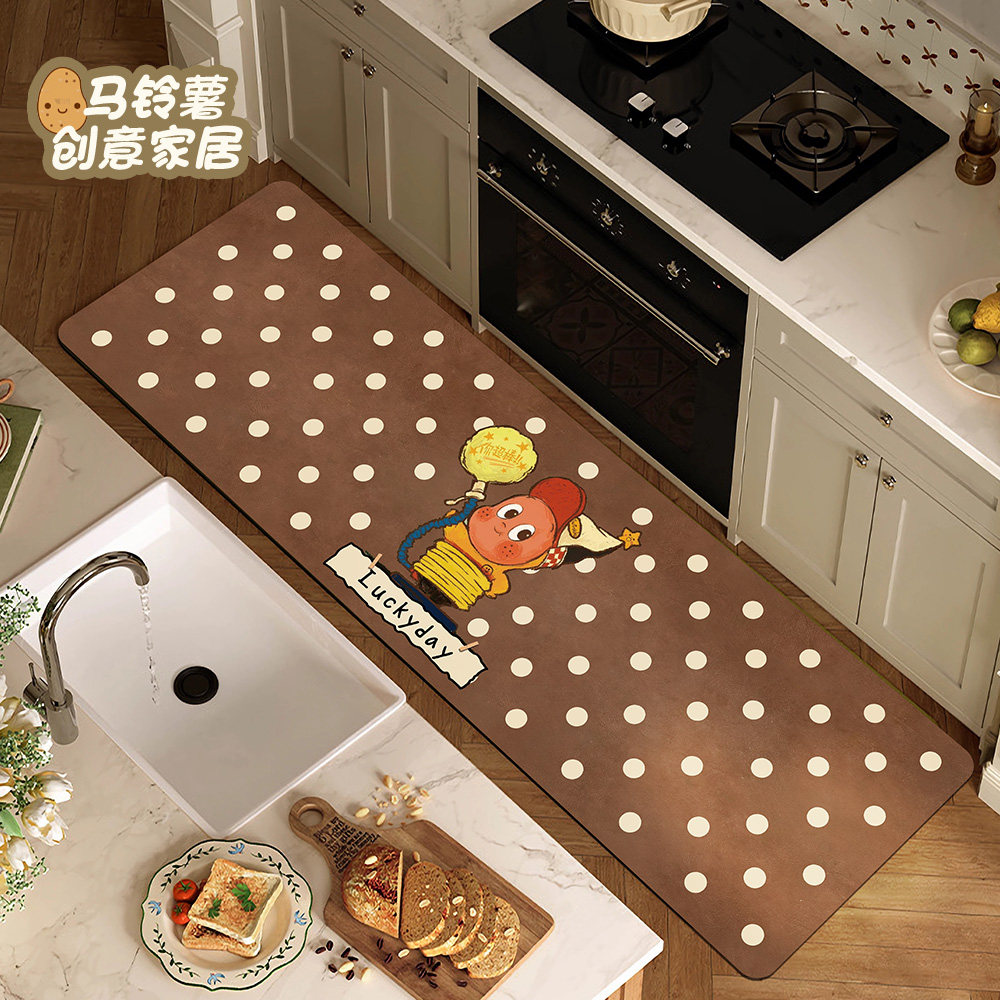 波点星星人厨房地垫2026新款吸水可擦免洗皮革脚垫子防滑长条地毯