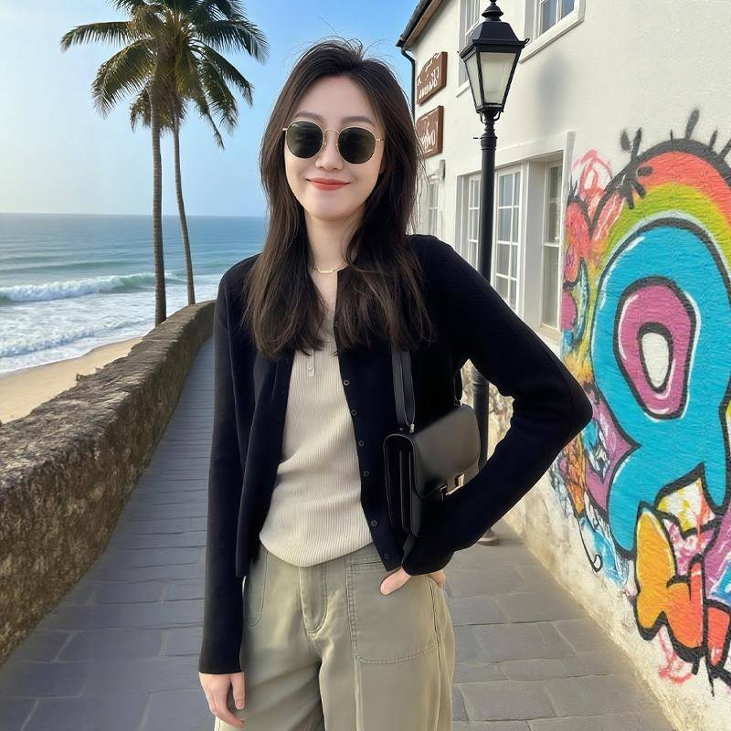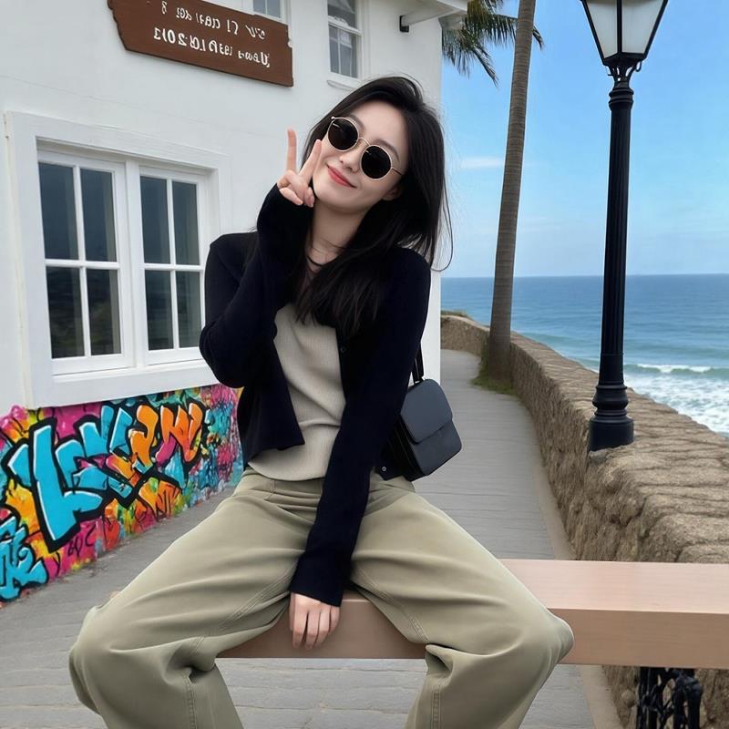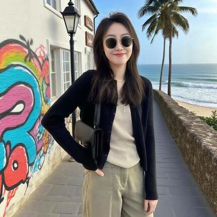 老钱风黑色高级感短款针织开衫女秋季法式小香风慵懒软糯毛衣外套