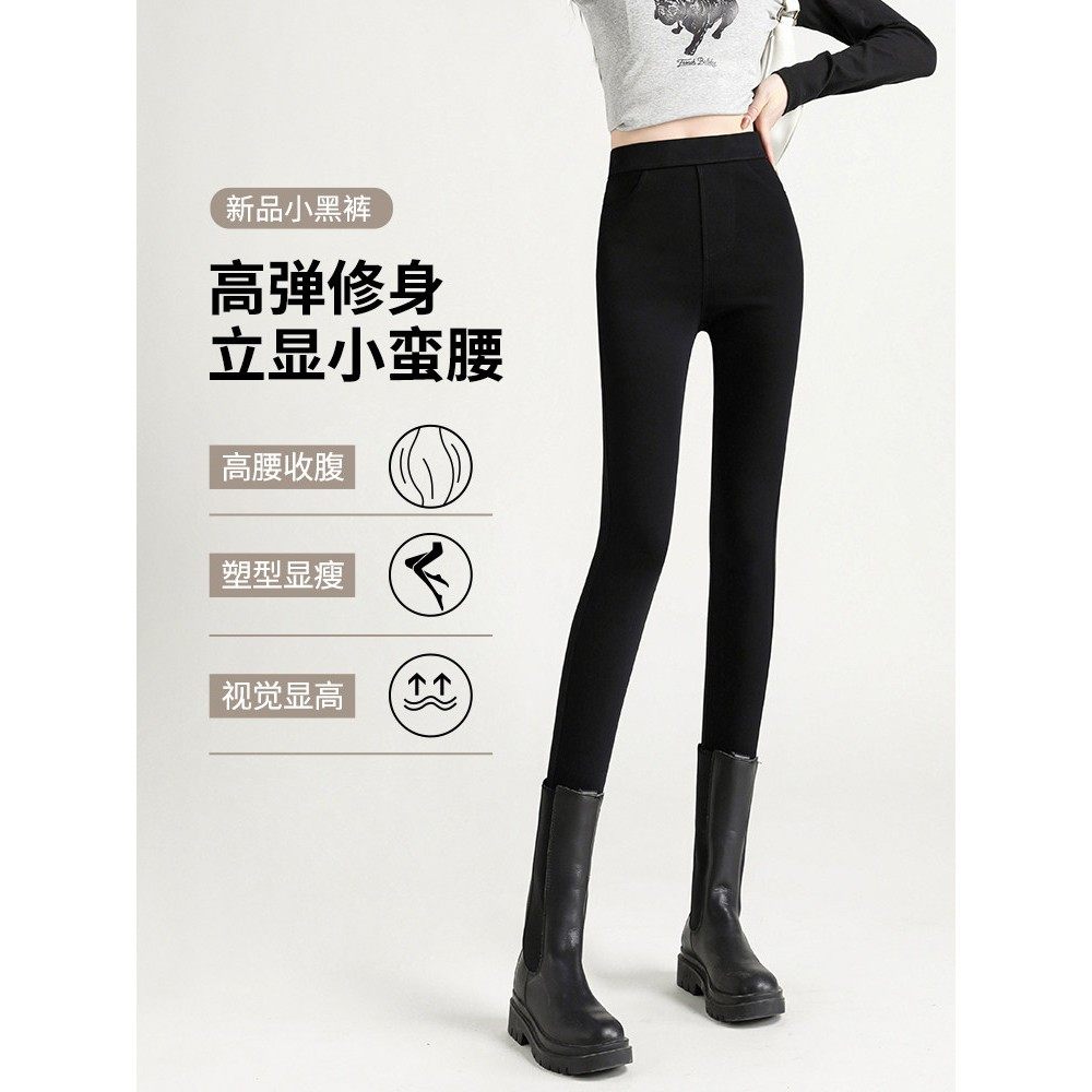 黑色打底裤女2025新款秋季外穿显瘦高腰黑裤紧身弹力铅笔小脚裤子
