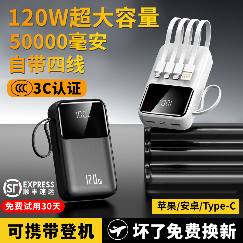 3C认证120W快充电宝大容量50000毫安适用华为苹果小米可定制logo