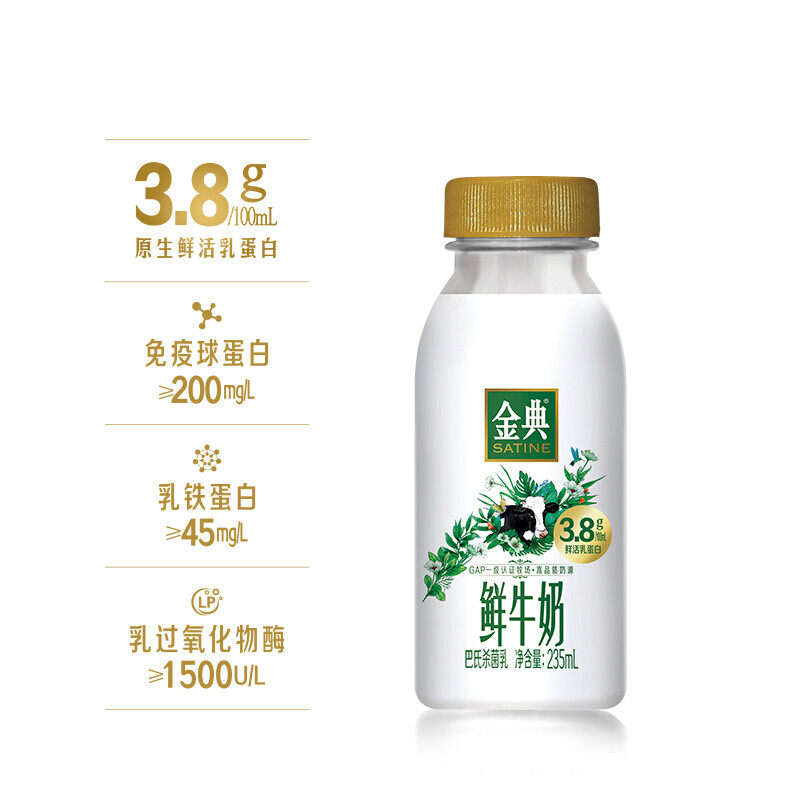 伊利金典鲜牛奶235*12瓶低温鲜奶纯牛奶新鲜巴氏杀菌低温营养佐餐