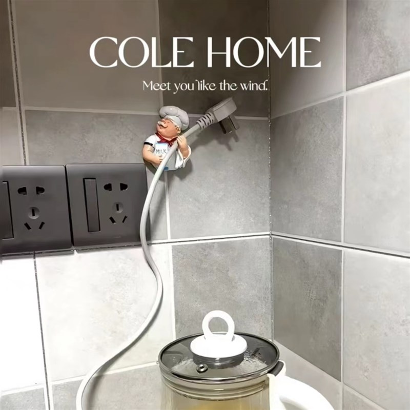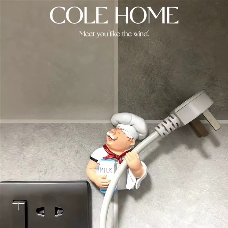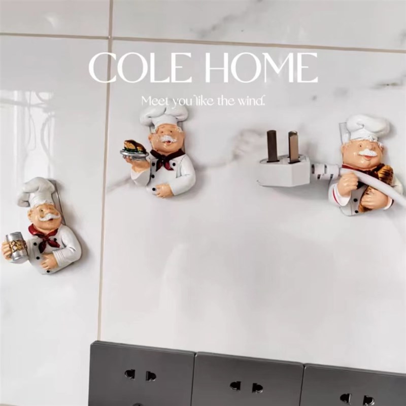 面包厨师家用电源线收纳固定器米其林大厨创意插头整理收纳架挂钩