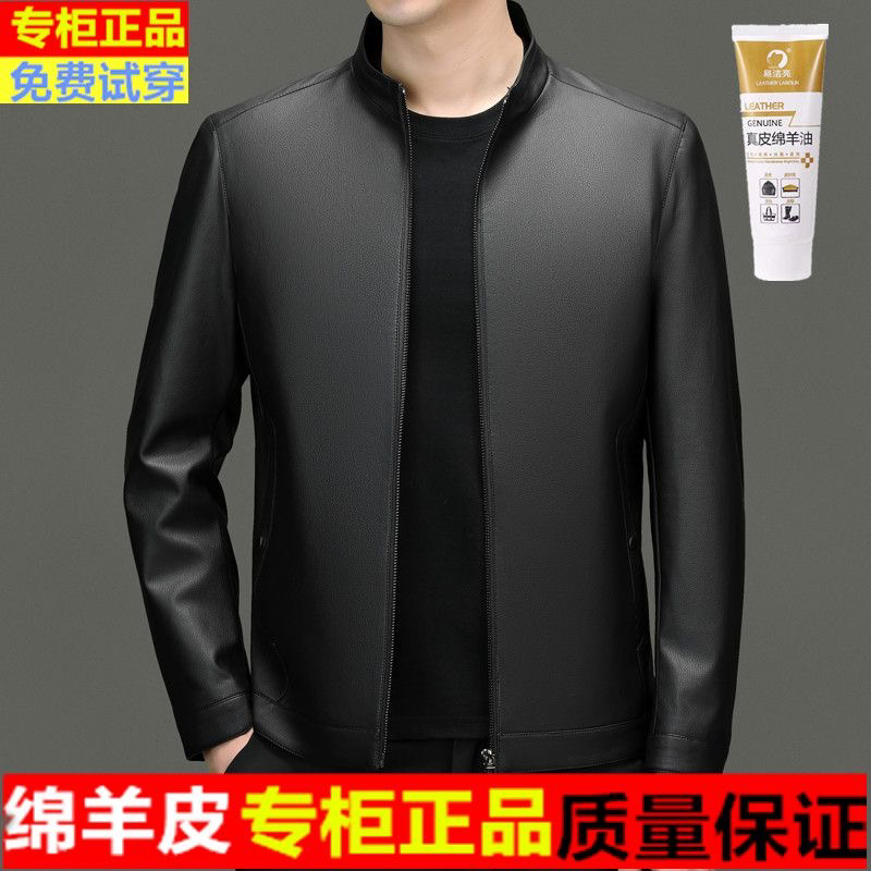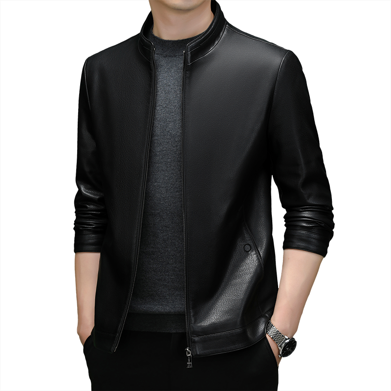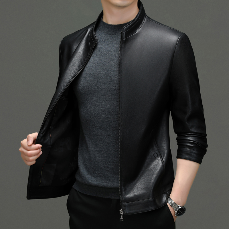 皮尔卡丹男士真皮皮衣秋冬外套新款立领机车冬季加绒皮夹克大码
