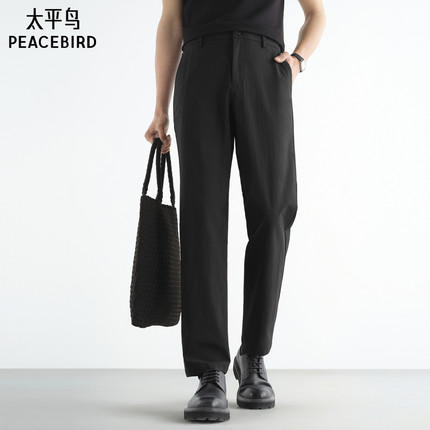 太平鸟男装休闲裤25夏新款黑色男士商务通勤西装裤直筒修身西裤