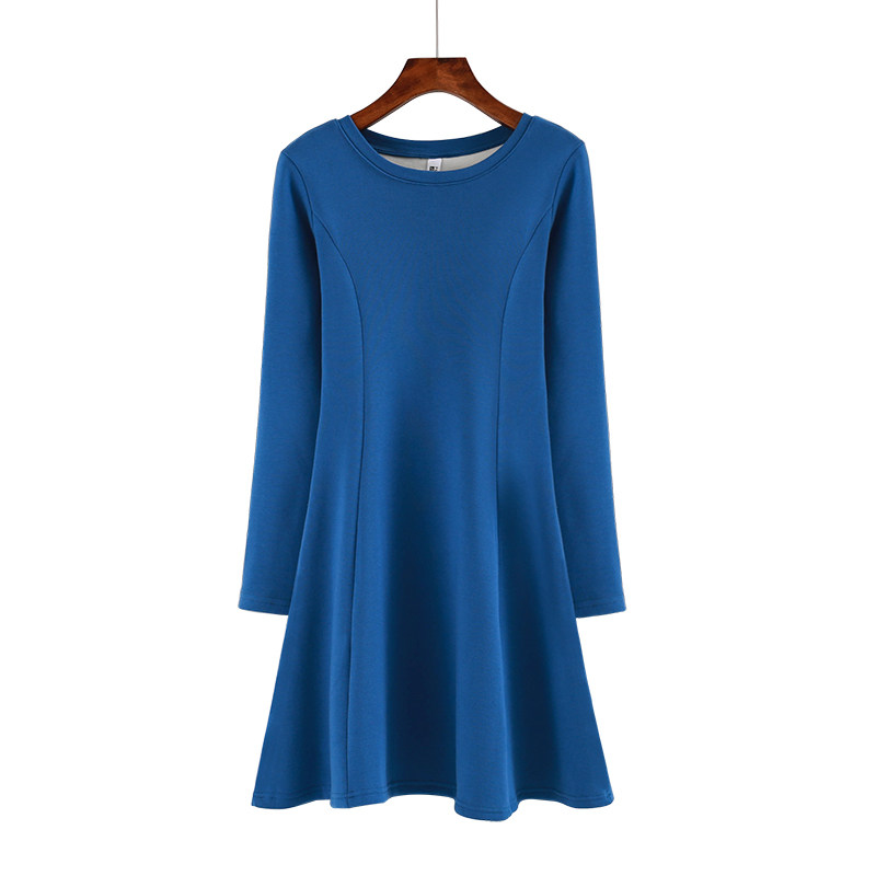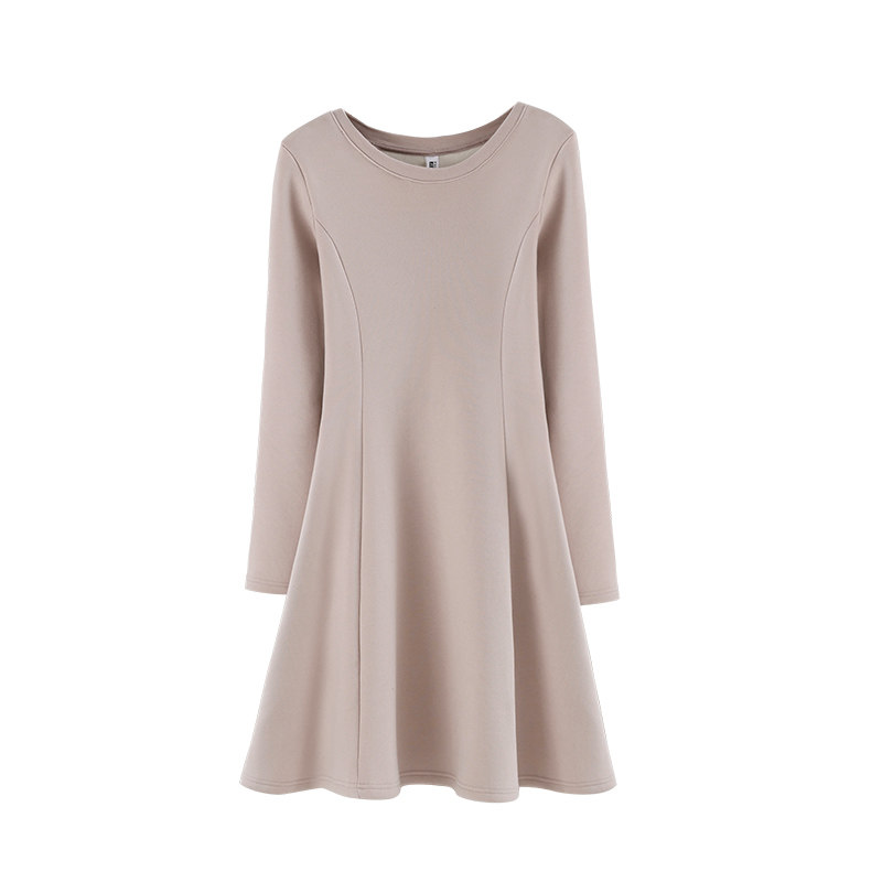 圆领秋冬季韩版纯白加绒加厚保暖修身女体恤中长款打底连衣裙长袖
