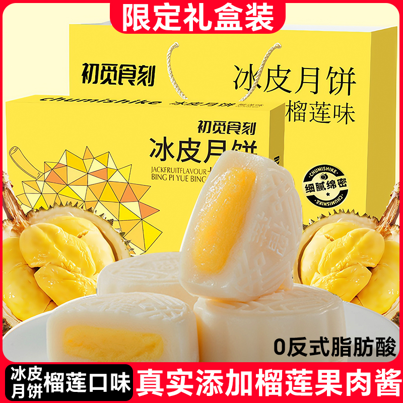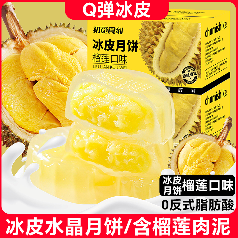 榴莲味流心夹心冰皮月饼爆浆月饼独立包装冰淇淋口感解馋零食糕点